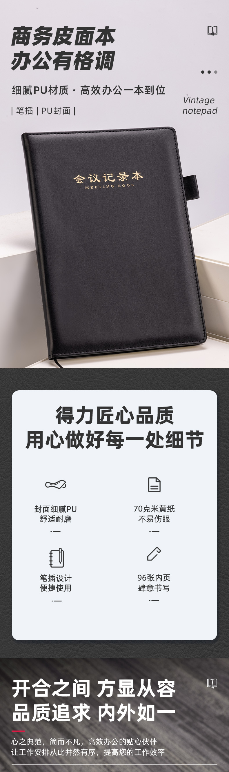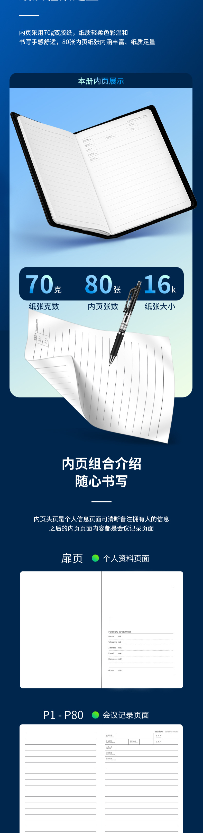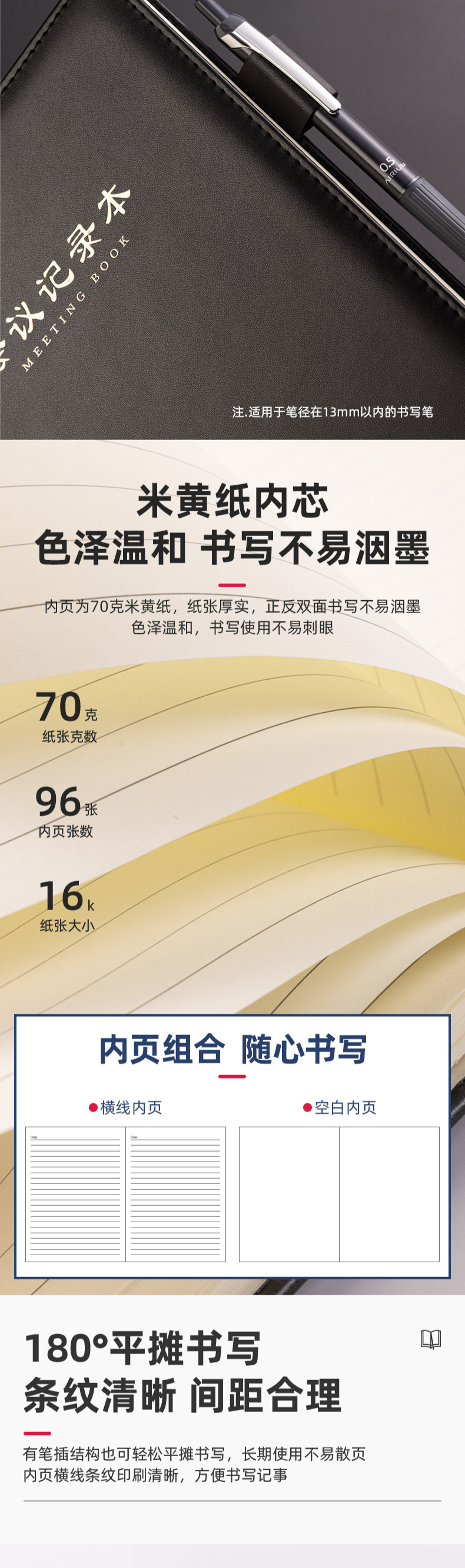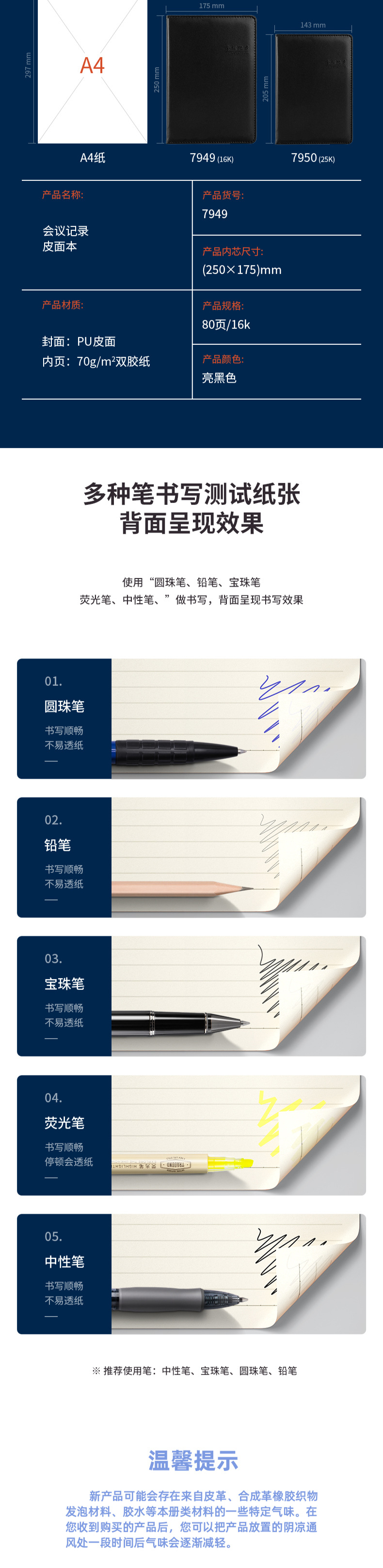 델리 7949 노트 문구 16K 80페이지 회의 노트 비즈니스 가죽 노트 대형 노트 심플 데일리