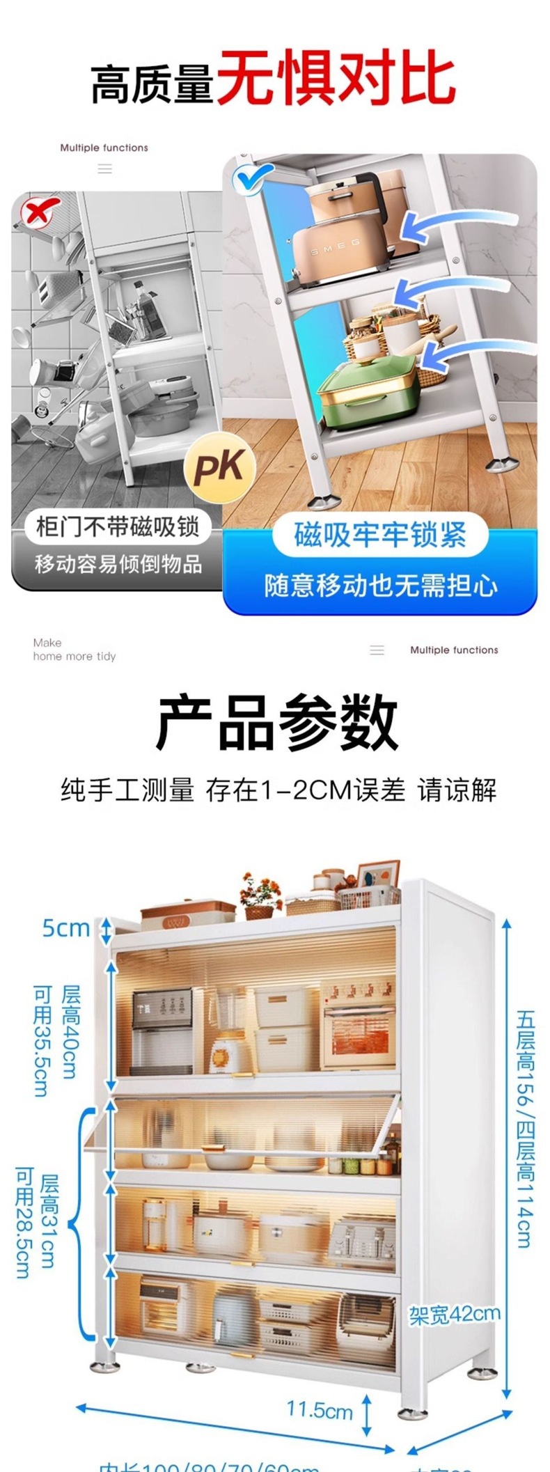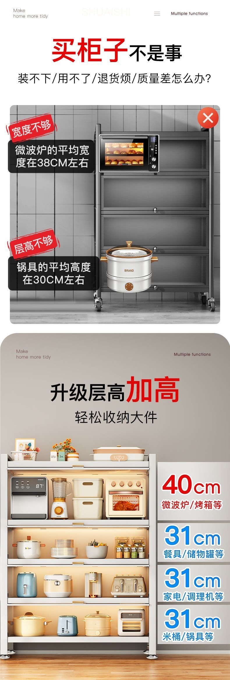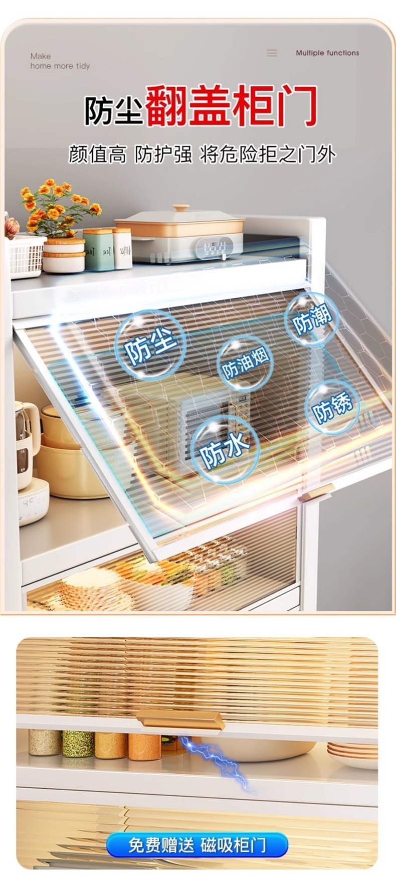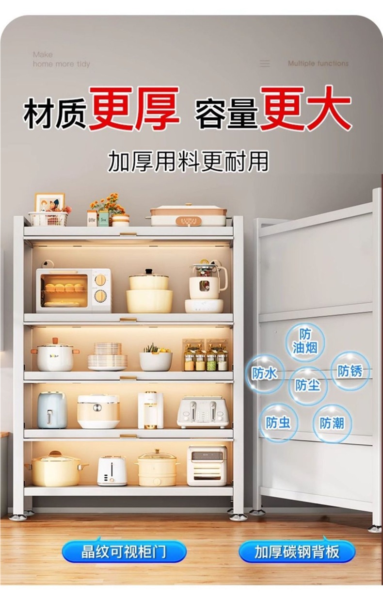 두꺼운 강철 주방 수납 캐비닛 전자 레인지 수납 캐비닛 다층 플립 탑 수납 랙 다기능 방진 랙
