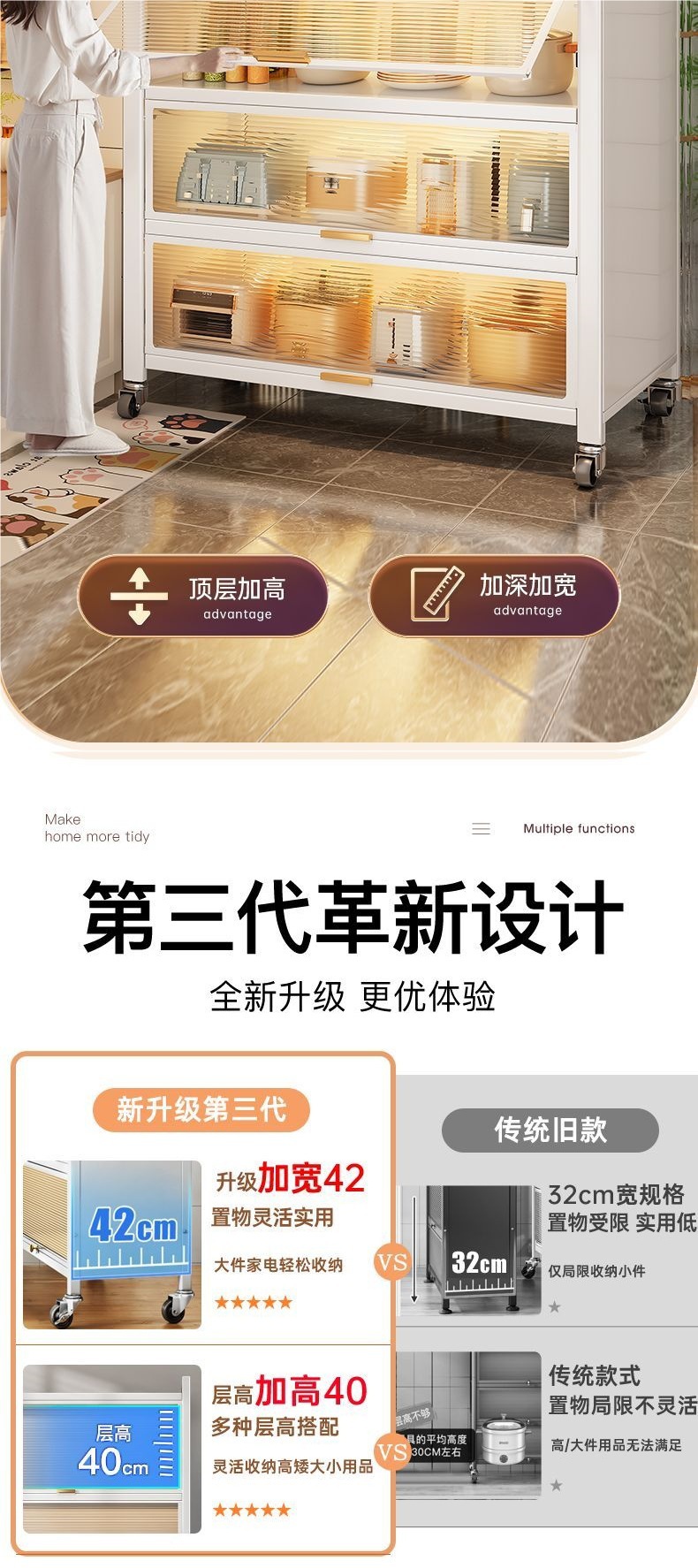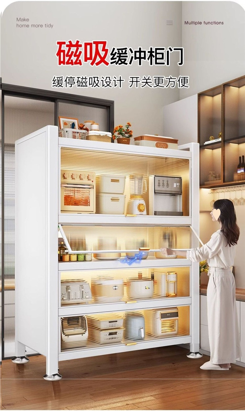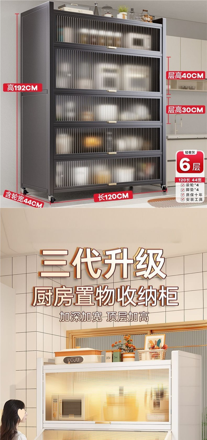 두꺼운 강철 주방 수납 캐비닛 전자 레인지 수납 캐비닛 다층 플립 탑 수납 랙 다기능 방진 랙