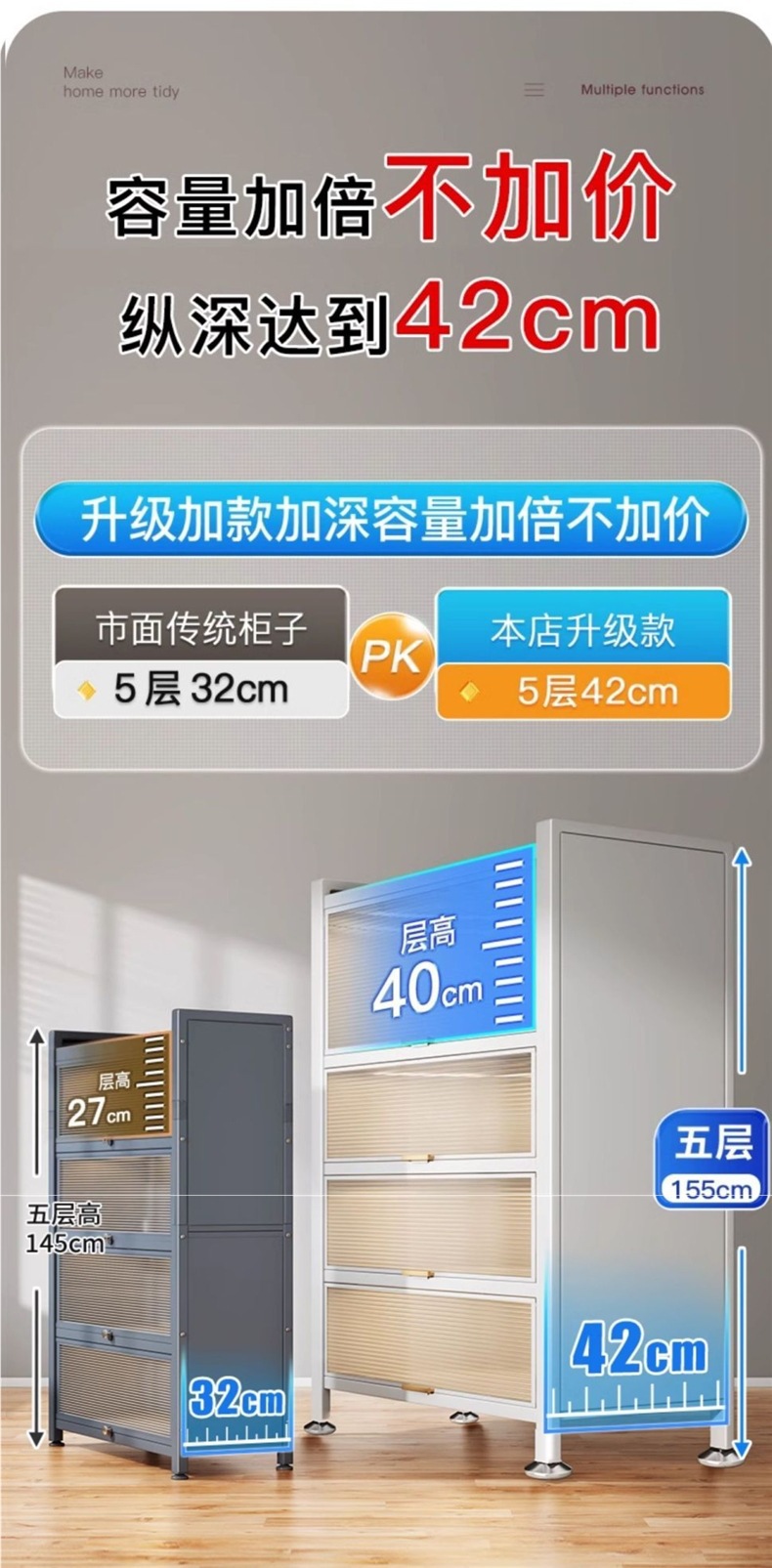 업그레이드 [나일론 그레이] 깊이 43.9cm + 높이 및 두꺼움 Door-to-Door Delivery - 4개 문 5층 - 길이 80*153cm [상층 높이] +