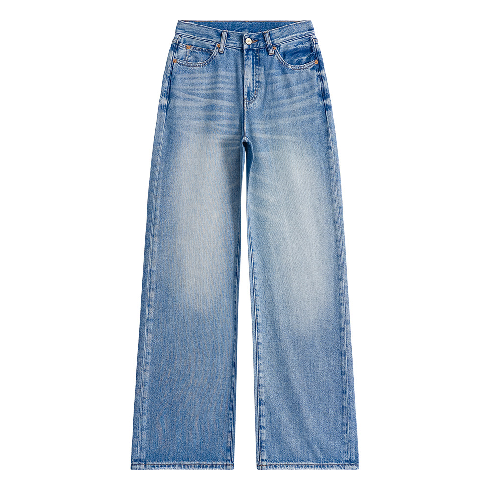 새로운 스타일의 여성용 봄 여름 레이온 루즈핏 하이웨이스트 스트레이트 레그 슬리밍 와이드 레그 남유 고품질 해외 수입 청바지