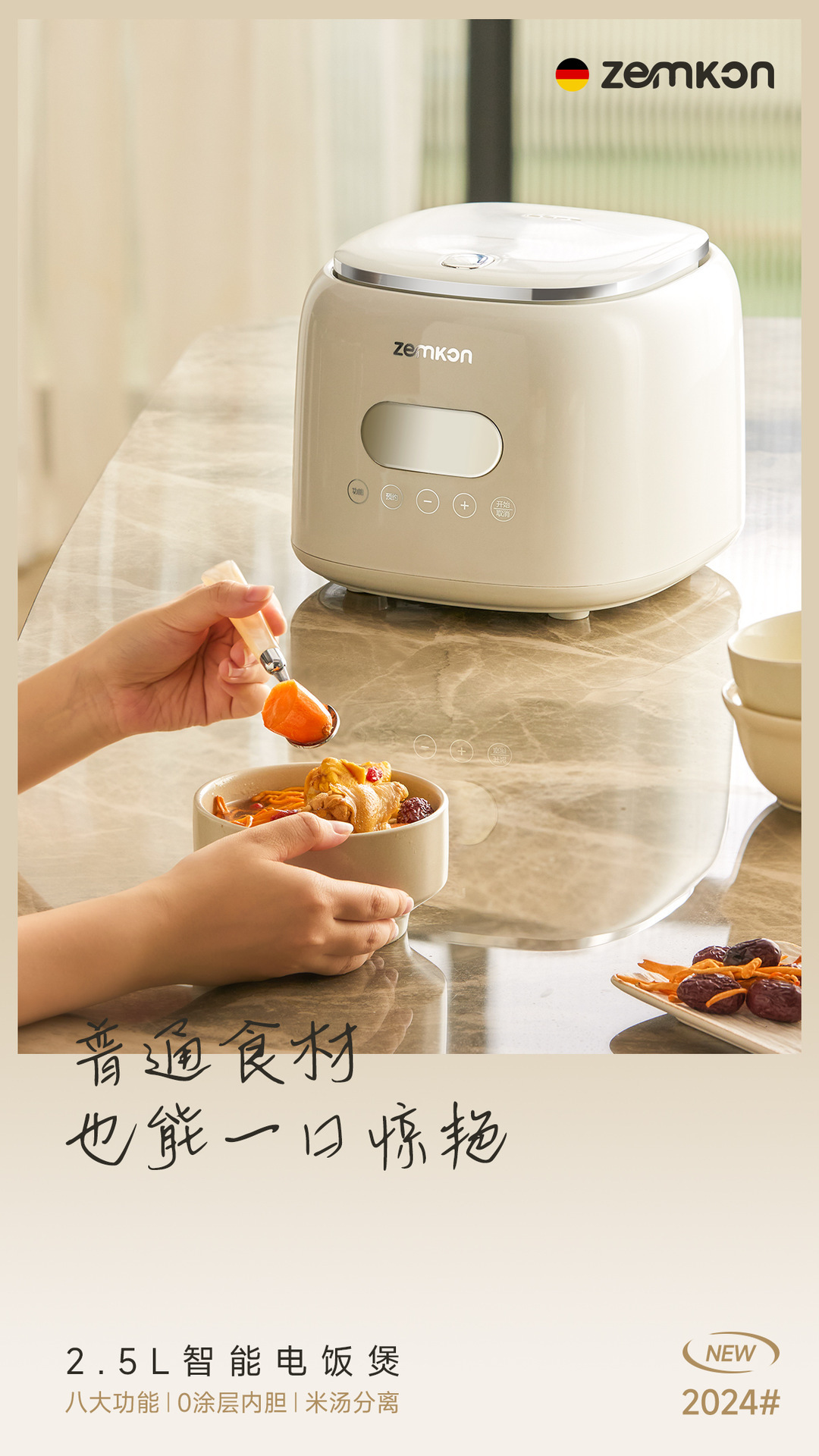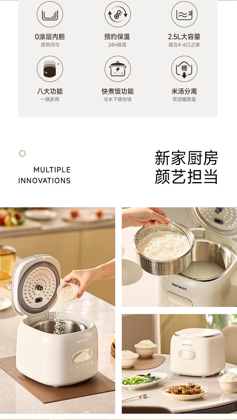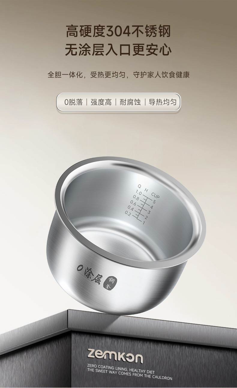 독일 제믹론 밥솥 스테인레스 스틸 0 코팅 3-4인용 미니 가정용 쌀 수프 분리 2-3인용 밥솥