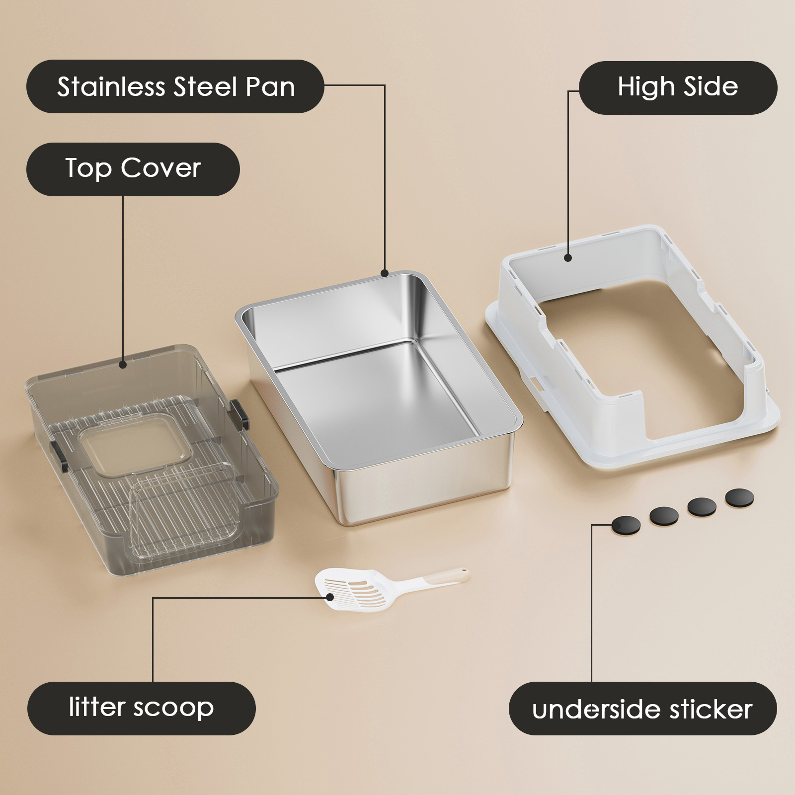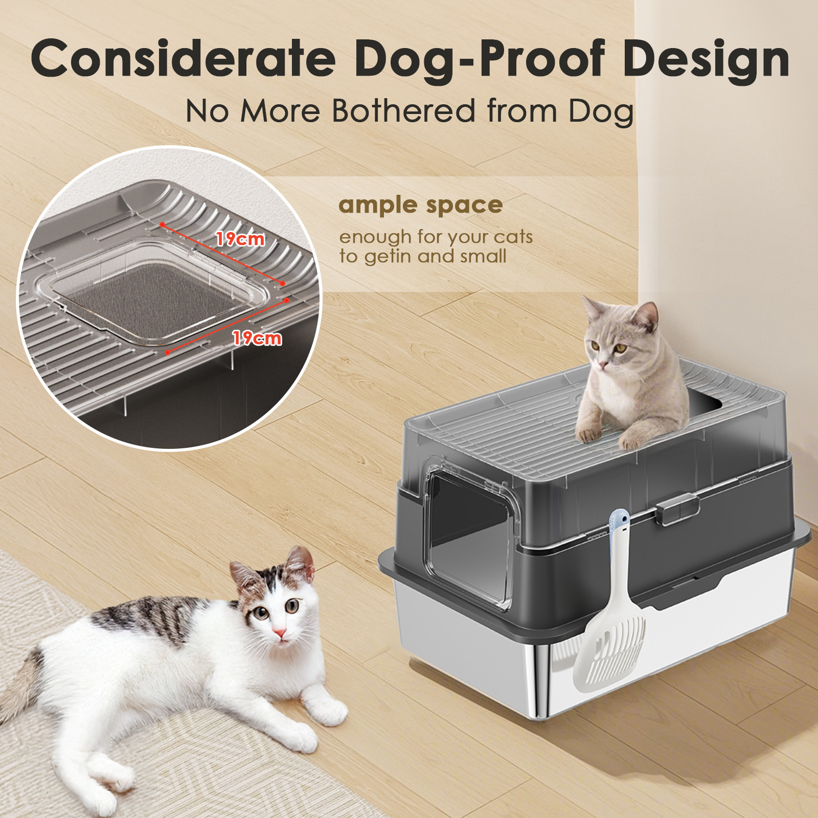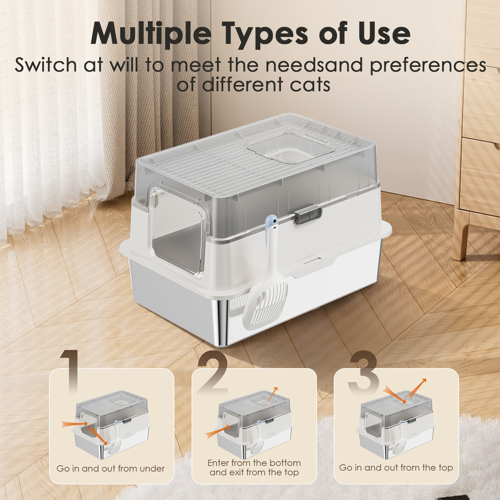 닫힌 스테인레스 스틸 고양이 쓰레기 상자 금속 고양이 화장실 스플래시 방지 모래 청소하기 쉬운 접이식 대형 공간 고양이 쓰레기 상자