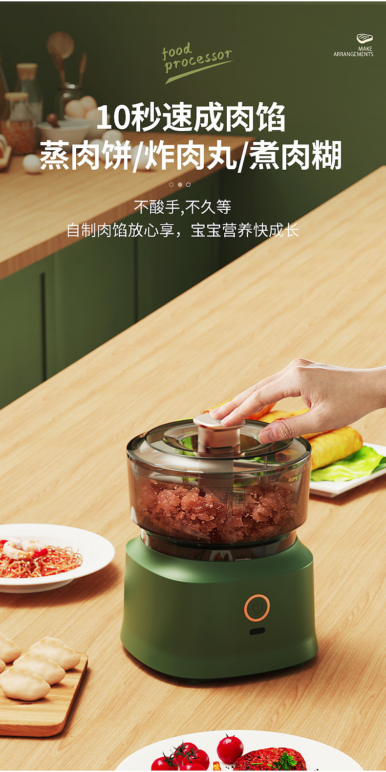 2024 새로운 다기능 요리 기계 무선 전기 고기 분쇄기 홈 주방 마늘 분쇄기 이유식 보충 기계