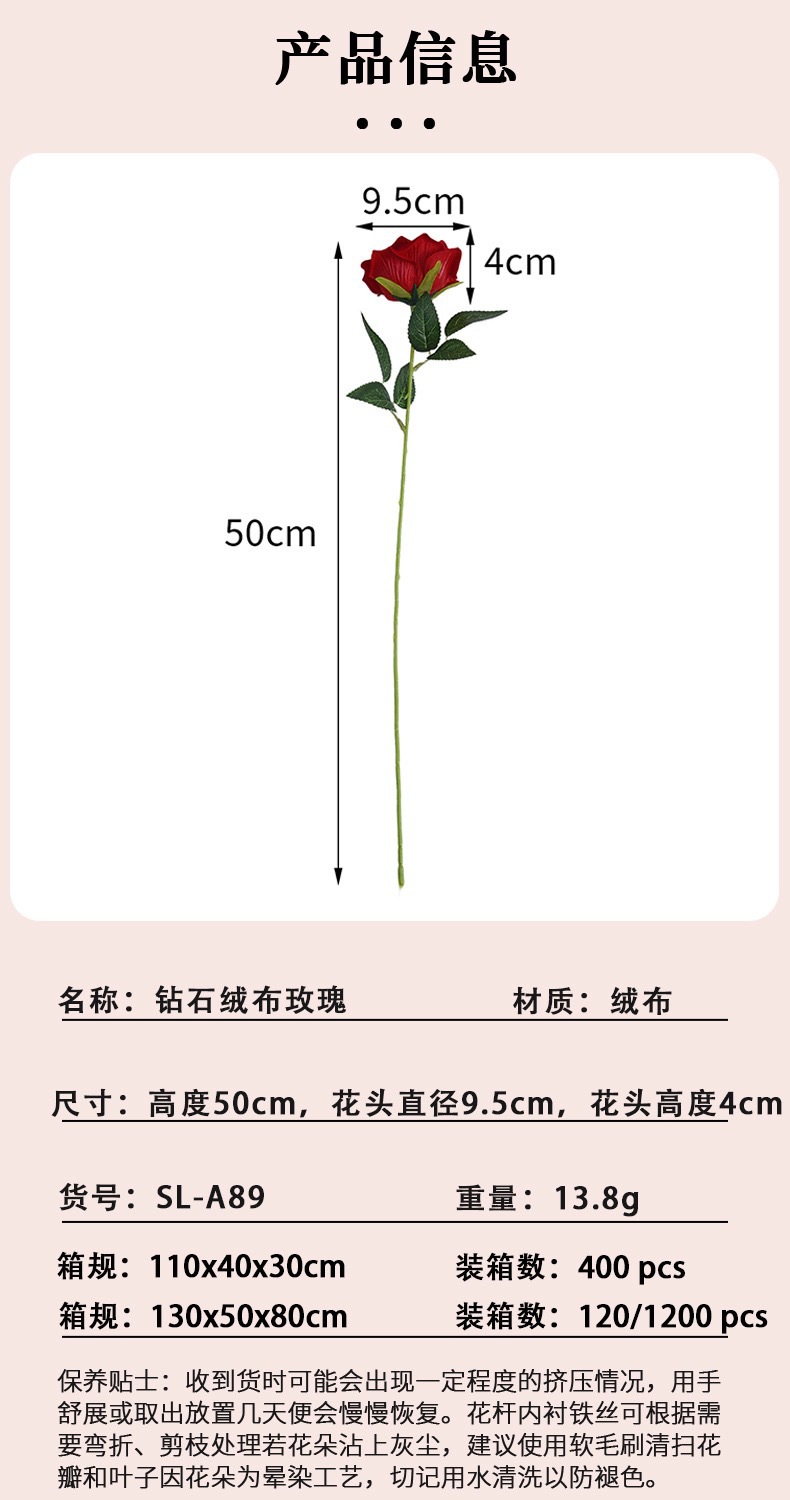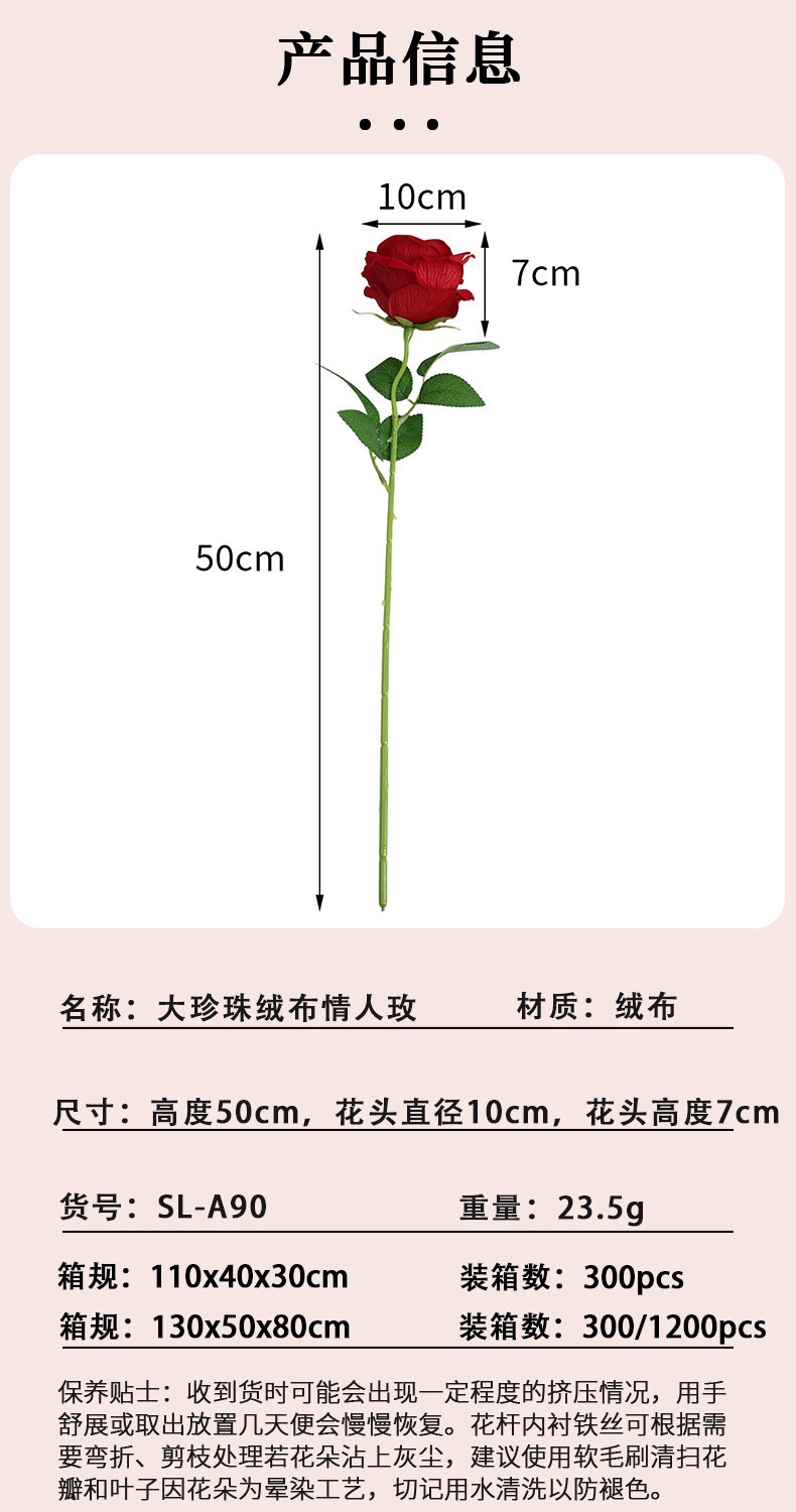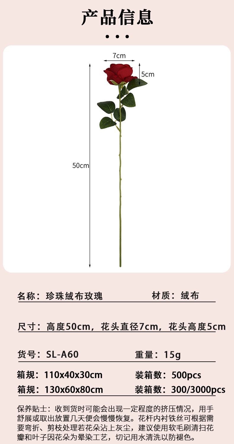 펄 벨벳 로즈 레드 (높이 50cm, 지름 7cm)