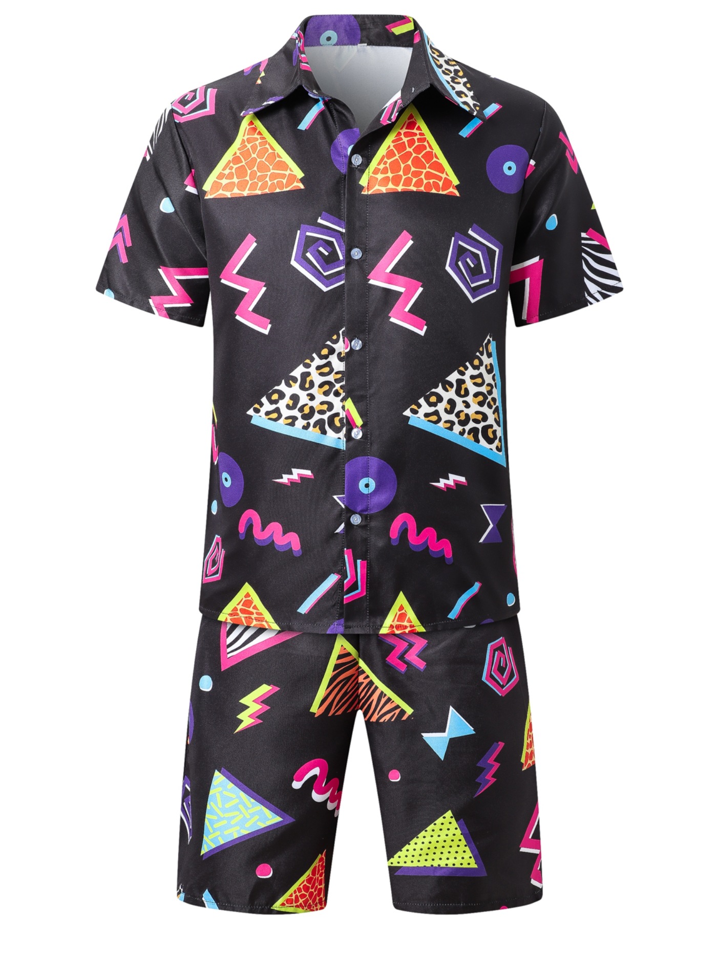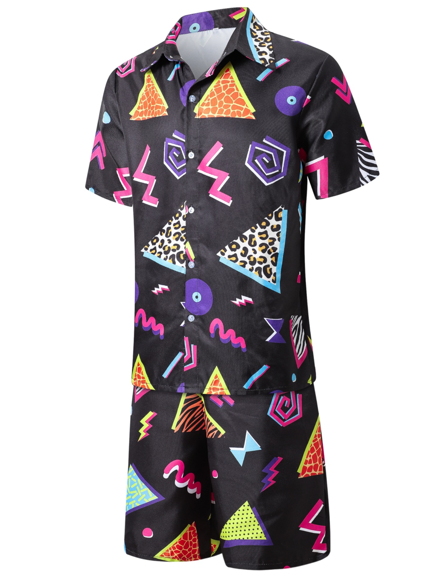 국경 간 공급 3D 인쇄 여름 해변 남자 정장 인쇄 짧은 셔츠 반바지 7080 년대 스타일 의류
