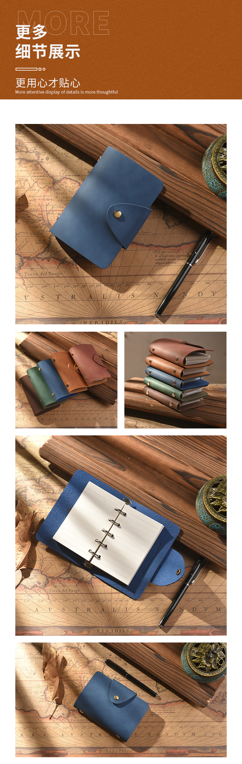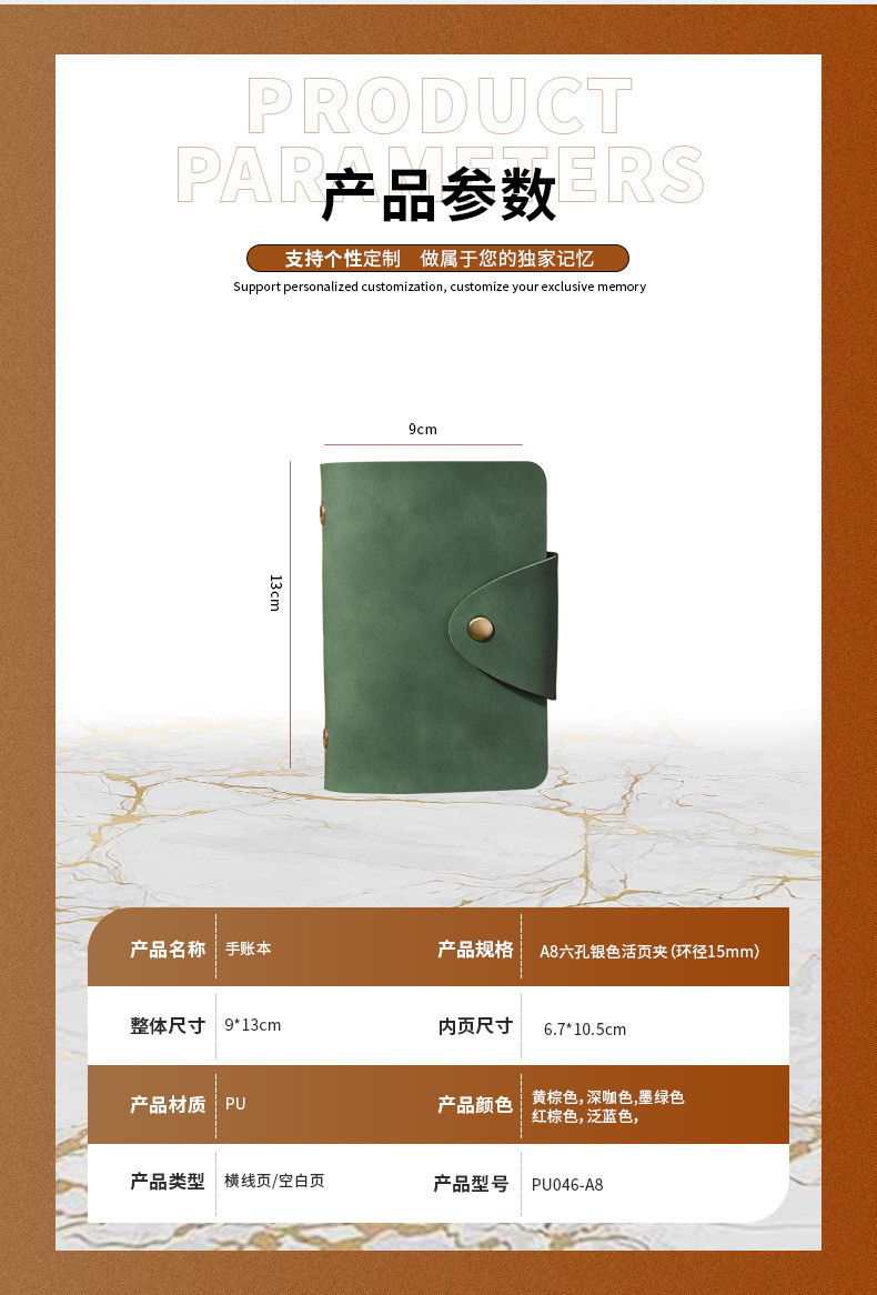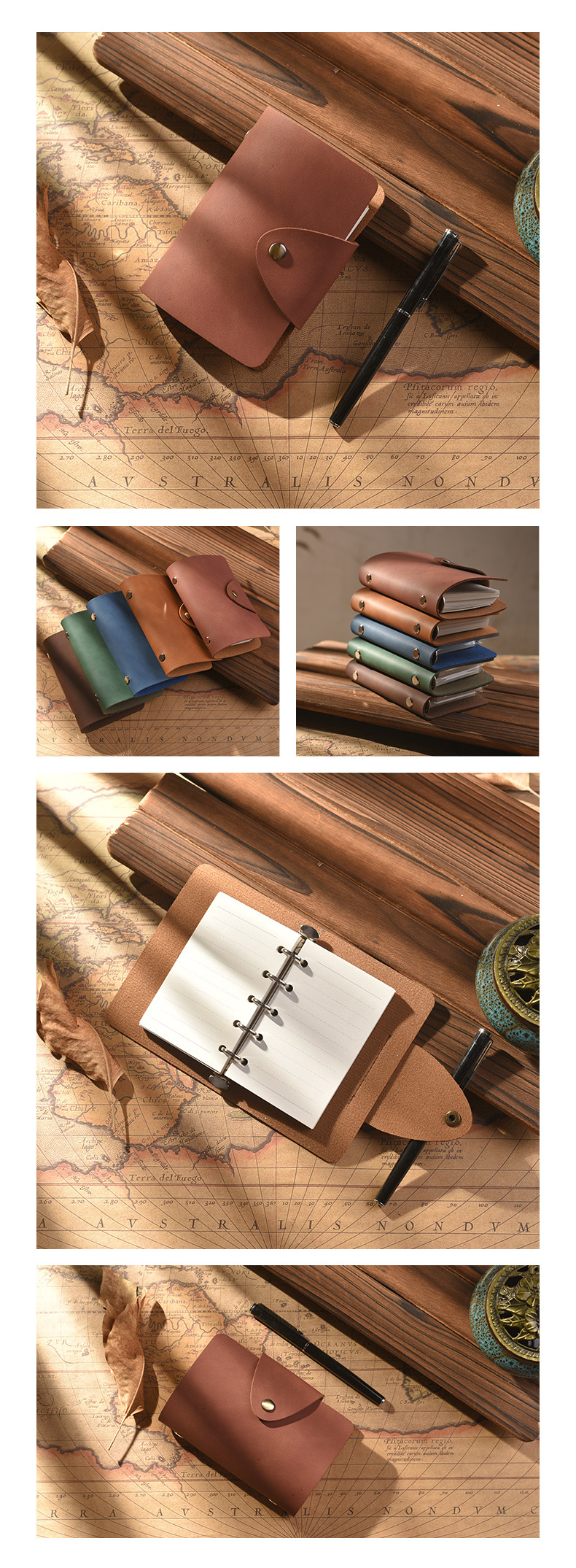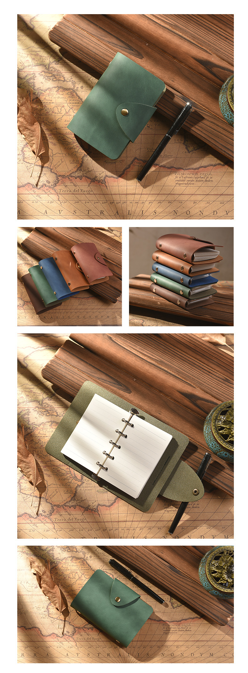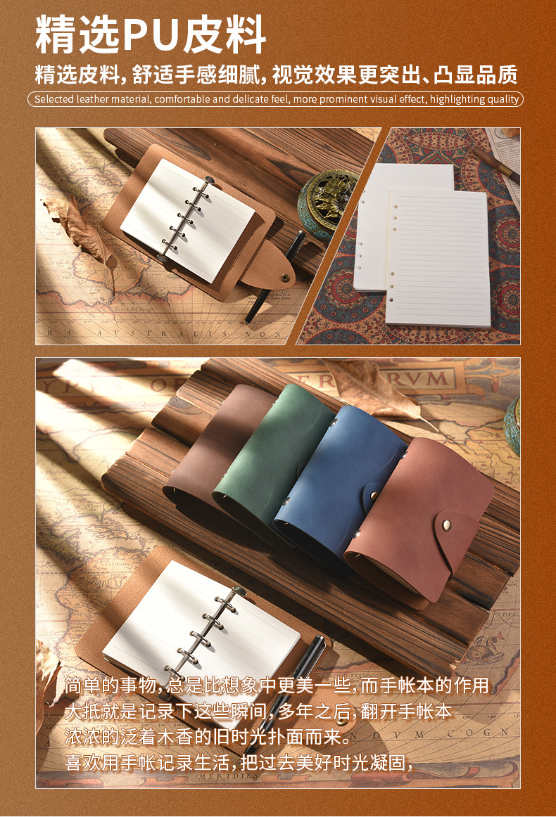 루스리프 탈착식 핸드북 PU 레트로 다이어리 노트 문구 A8 레트로 노트 비즈니스 스타일