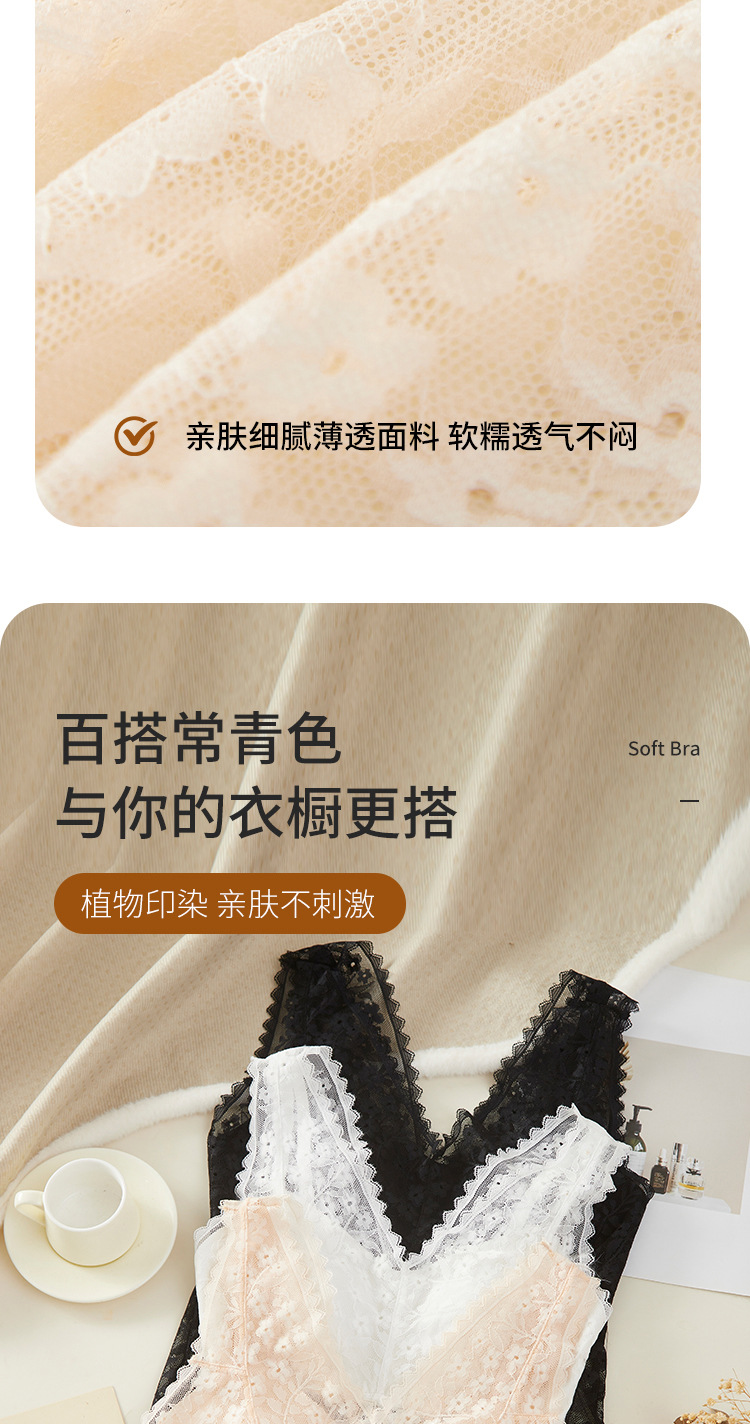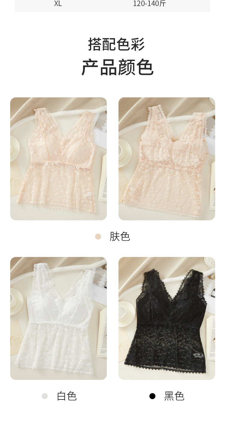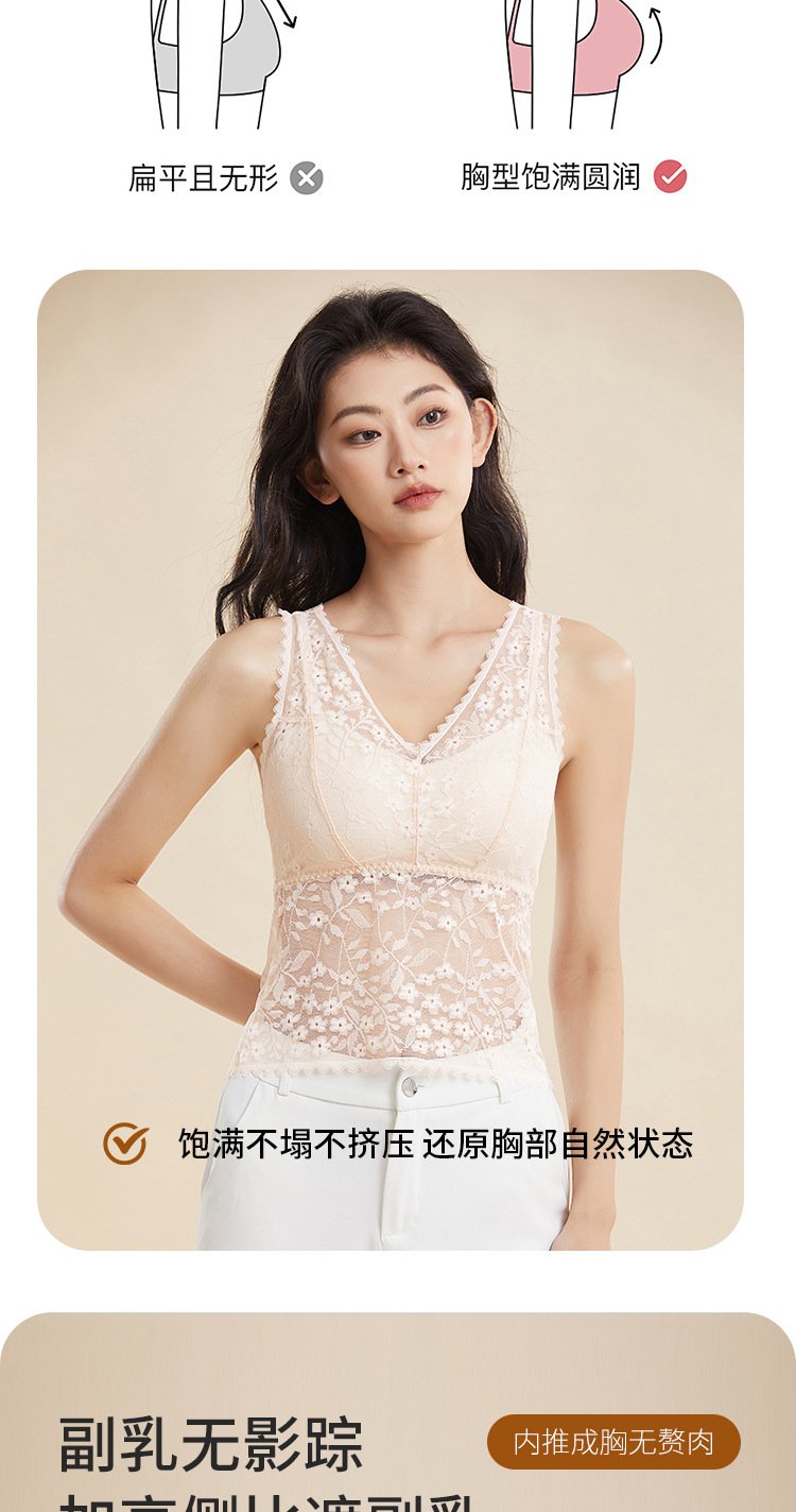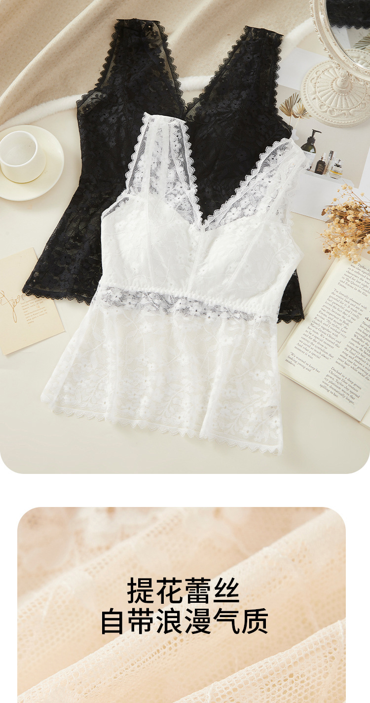 여름 필수품, 얇고 섹시한 레이스 브이넥 브라프리 올인원 고정컵 가슴 서포트 캐미솔