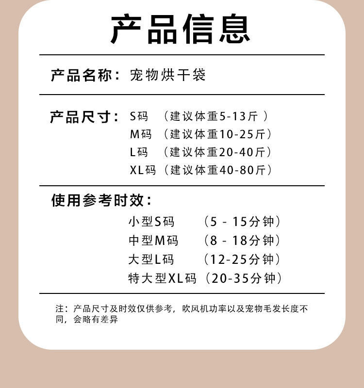 국경을 넘는 애완동물 건조 가방, 고양이와 강아지 모두를 위한 털 건조 및 목욕용, 모든 플랫폼에서 배송 가능 XJ