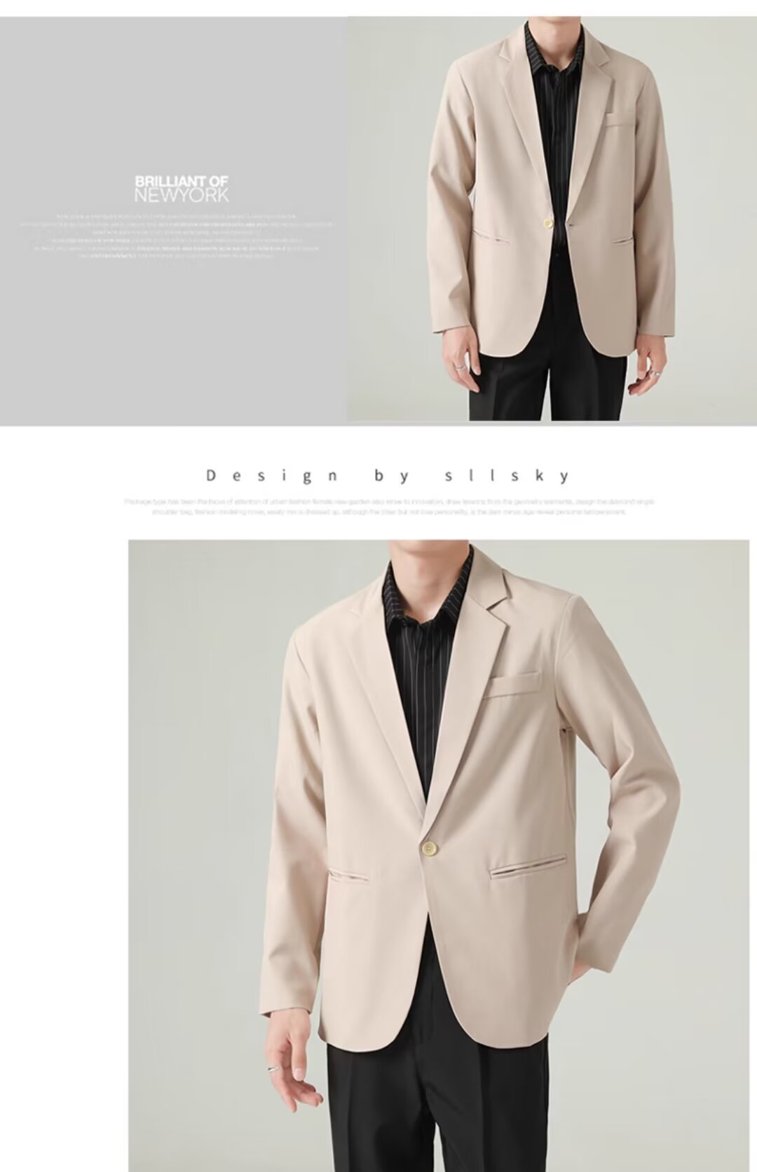 젊은 남성을 위한 캐주얼 정장, 한국 스타일 트렌디하고 멋진 작은 정장 상의, 홍콩 패션 브랜드 라이트 비즈니스 싱글 정장 재킷