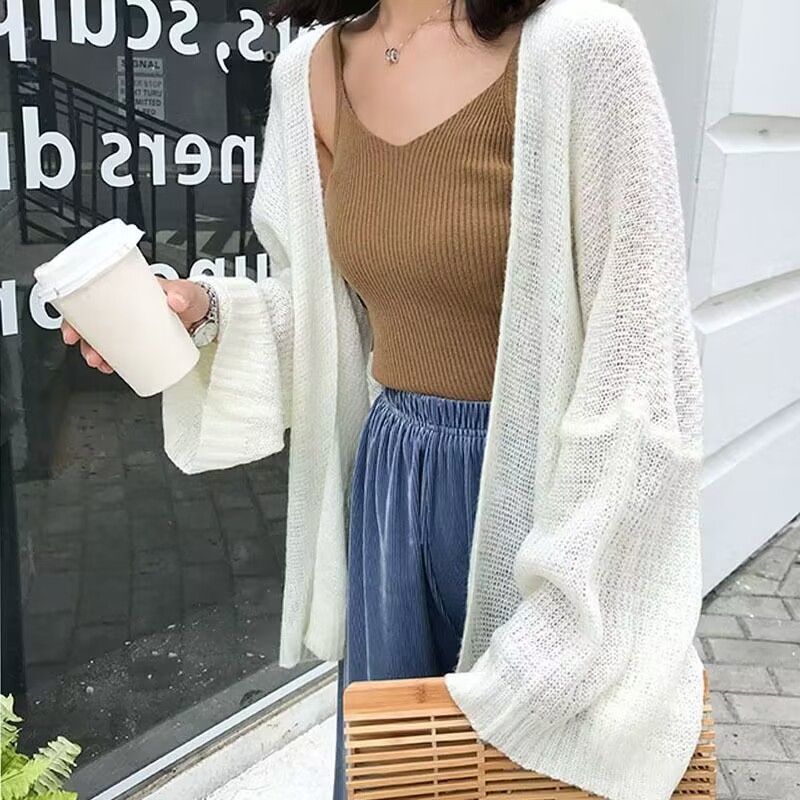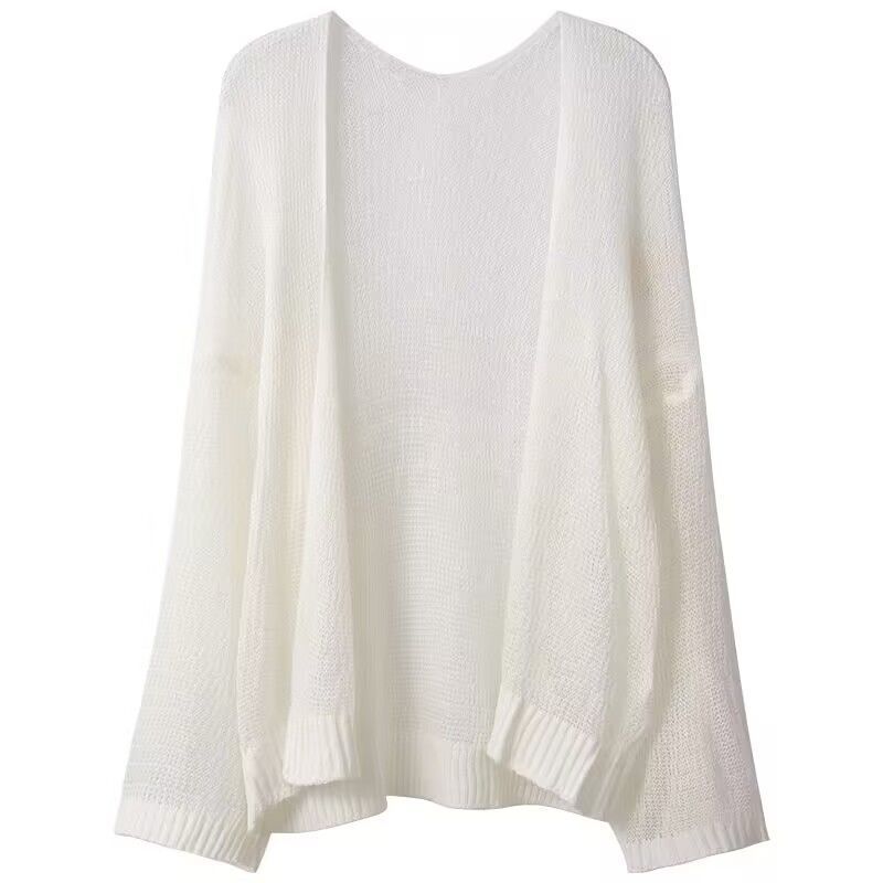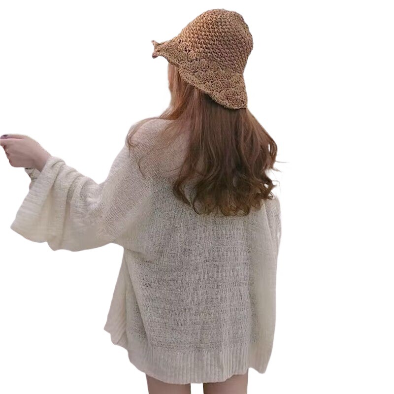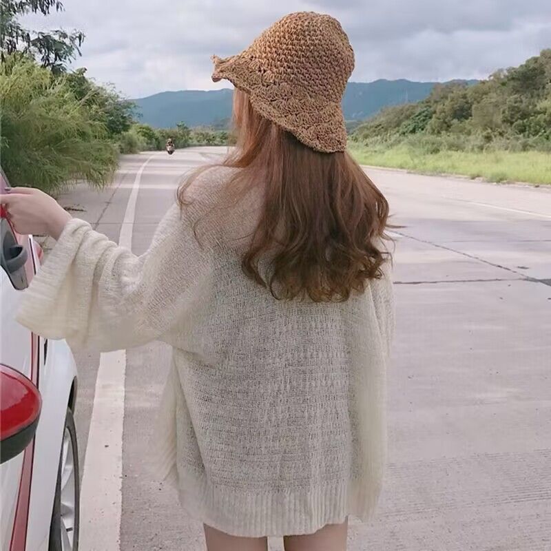 빈티지 게으른 스타일 얇은 긴팔 니트 카디건 여성용 태양 보호 의류 봄 및 여름 새로운 루즈 탑 코트 에어컨 셔츠