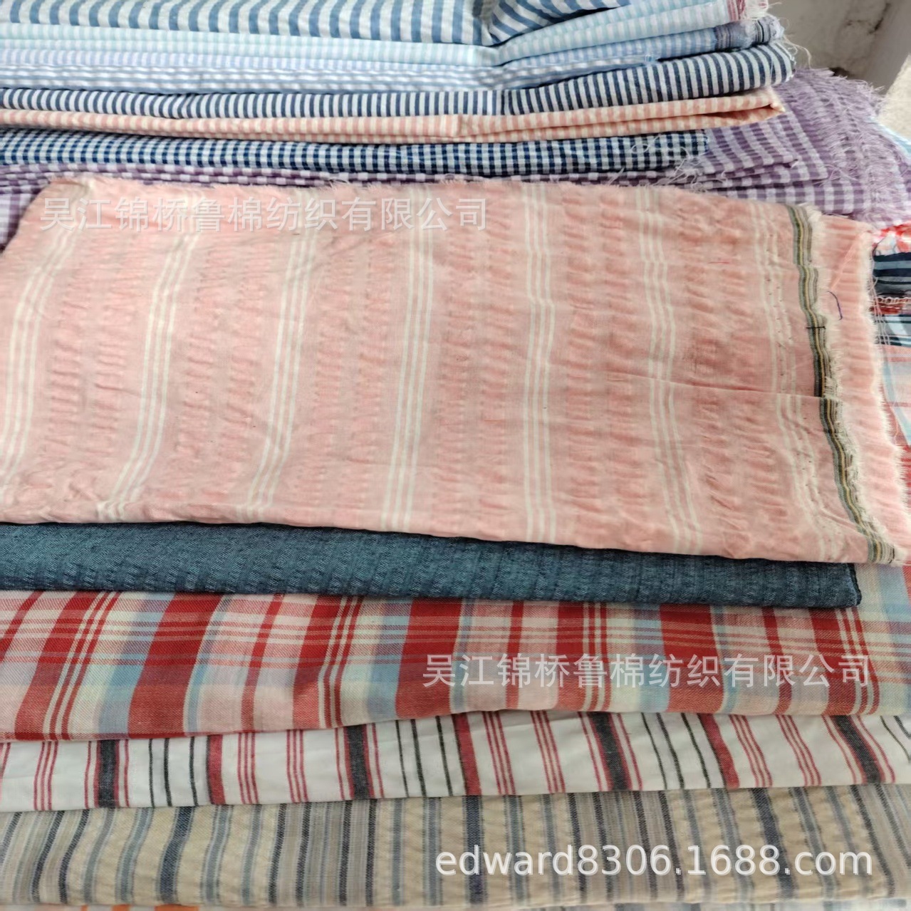 면 원사 염색 버블 천 40*32/2 폴리에스터 면 스트립 자카드 T/R 스트레치 주름 천 소금 수축 인쇄 3D 양각 천