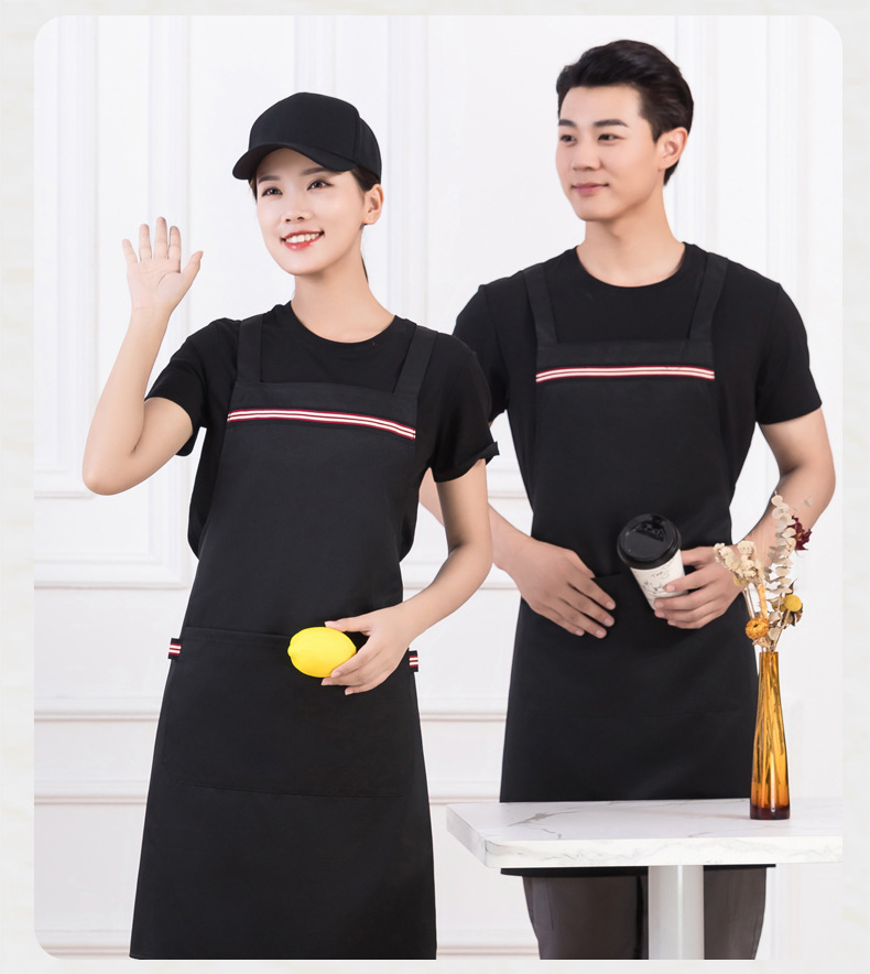[대비색 어깨끈 방수] LS-G2466 조절 가능한 스트랩 앞치마 블랙