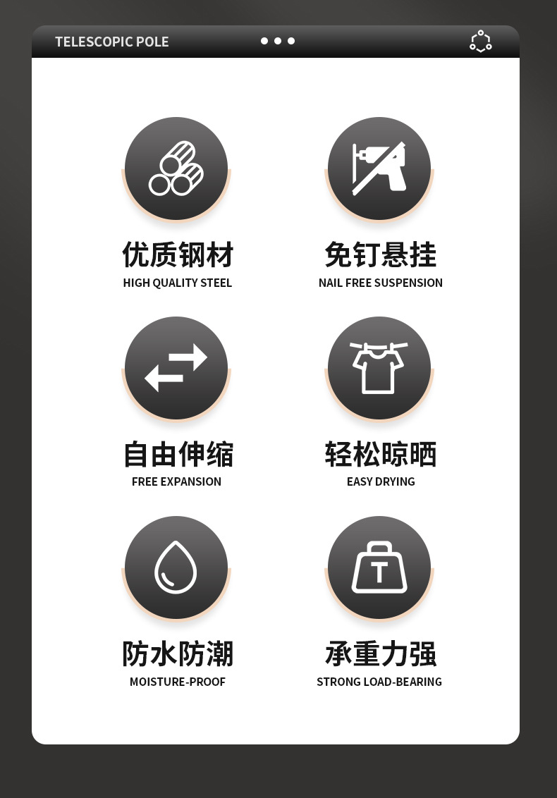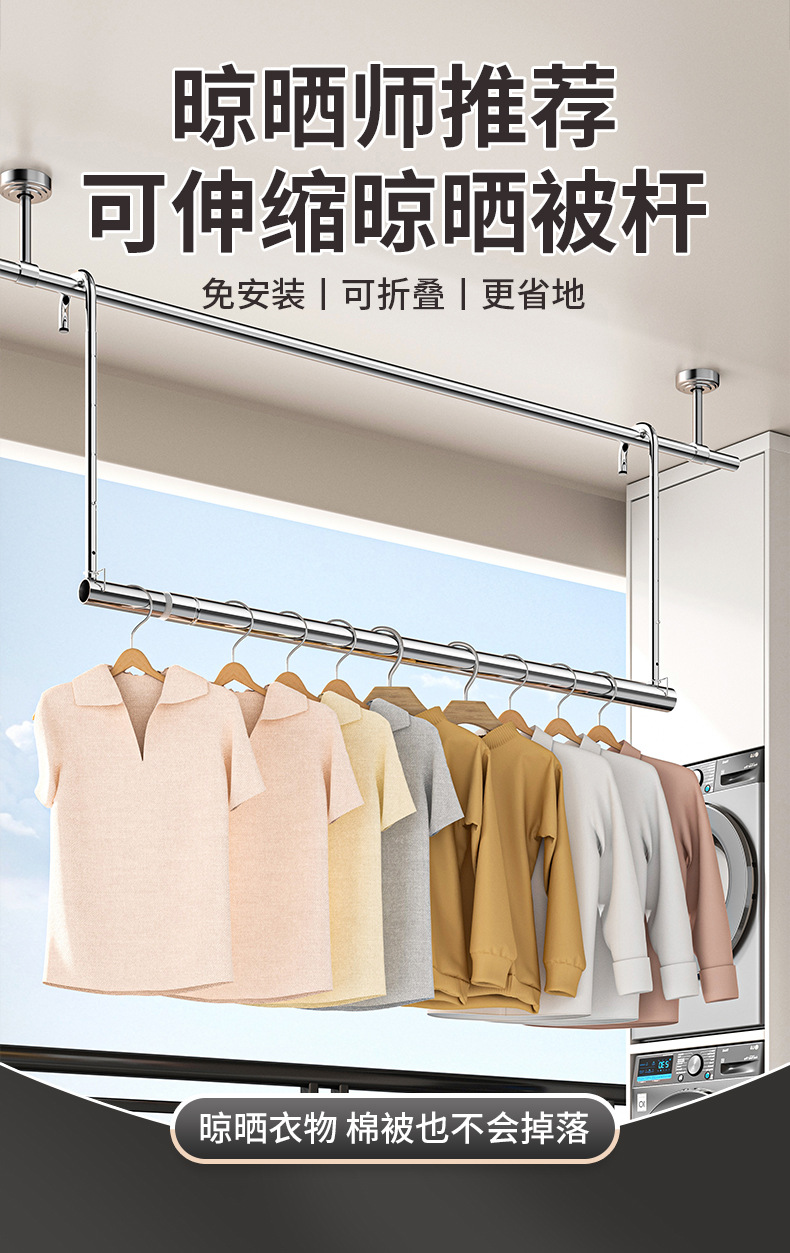 망원경 건조 랙 발코니 스테인레스 스틸 막대 두꺼운 구멍이없는 보이지 않는 냉각 퀼트 건조 랙