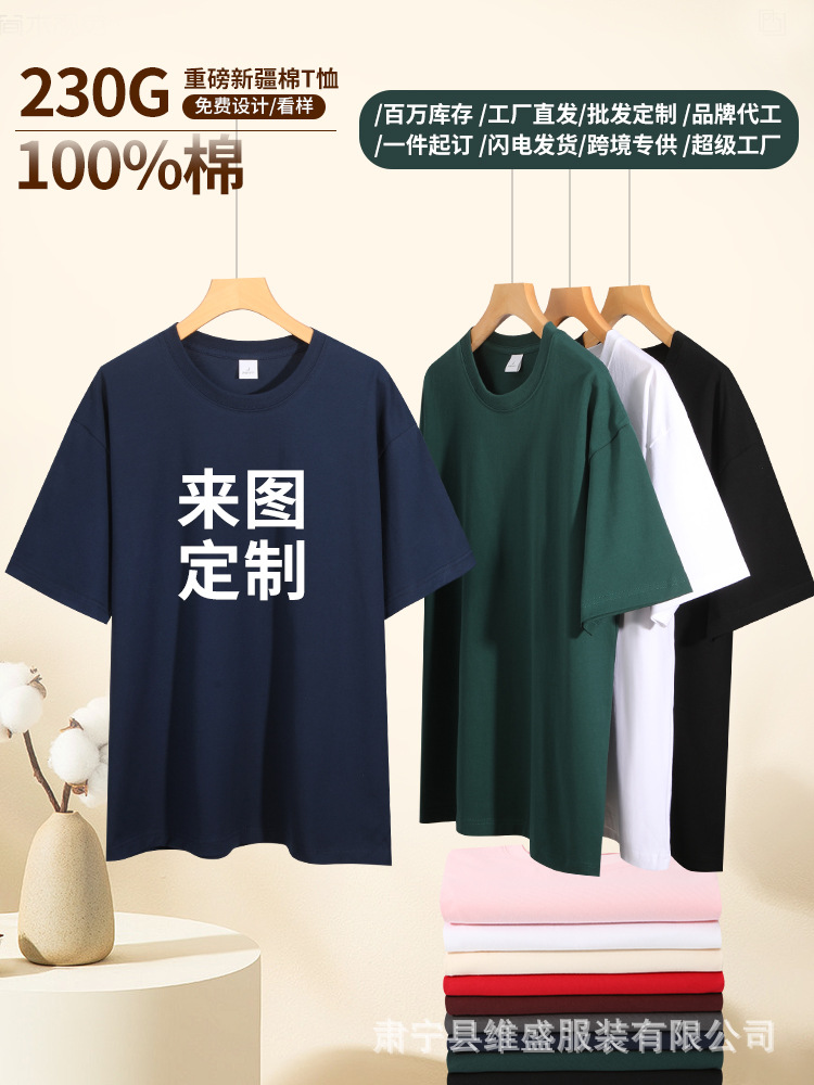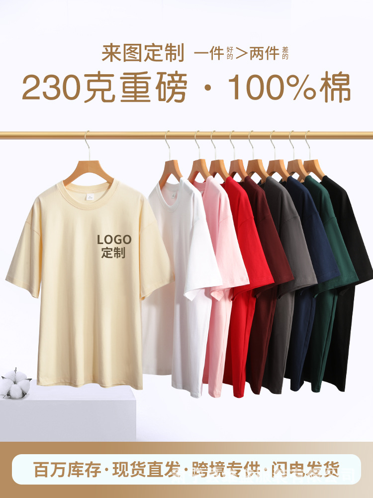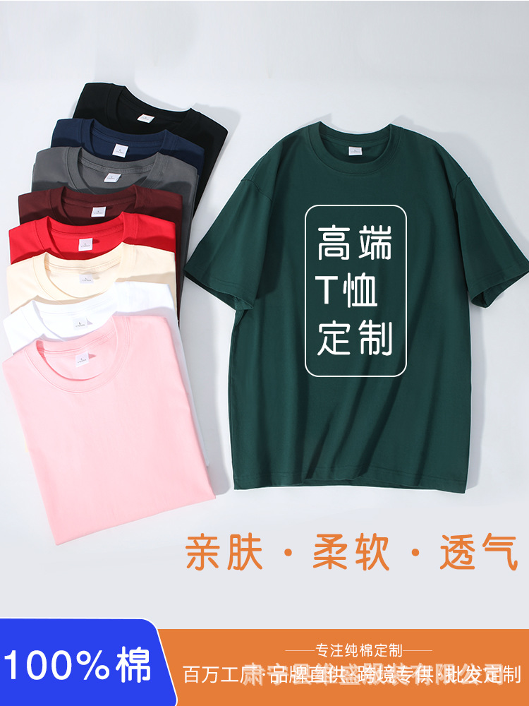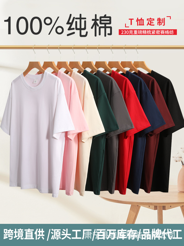 순수 코튼 티셔츠 반팔 여름 유행 브랜드 바닥 셔츠 흰색 티셔츠 남성 커플 티셔츠 맞춤 문화 셔츠 인쇄 230g