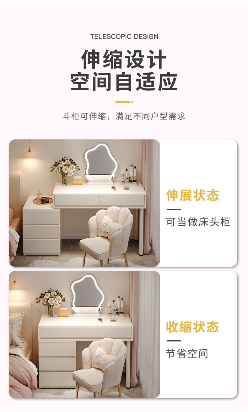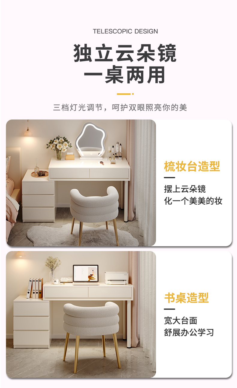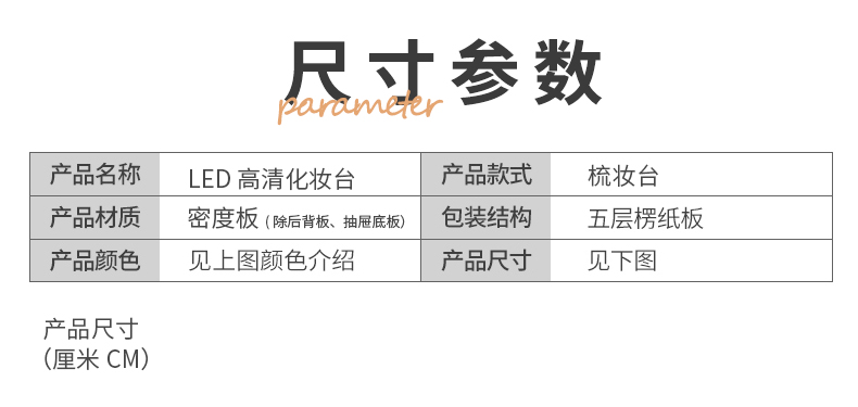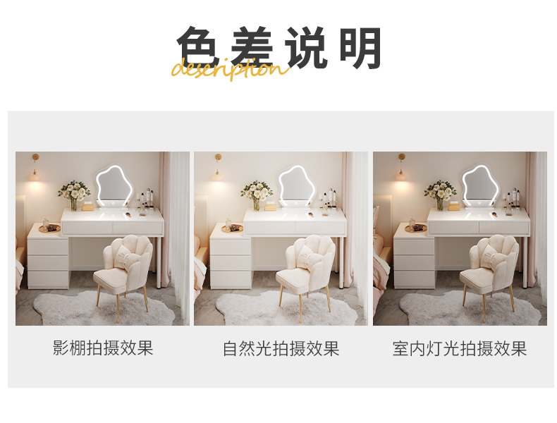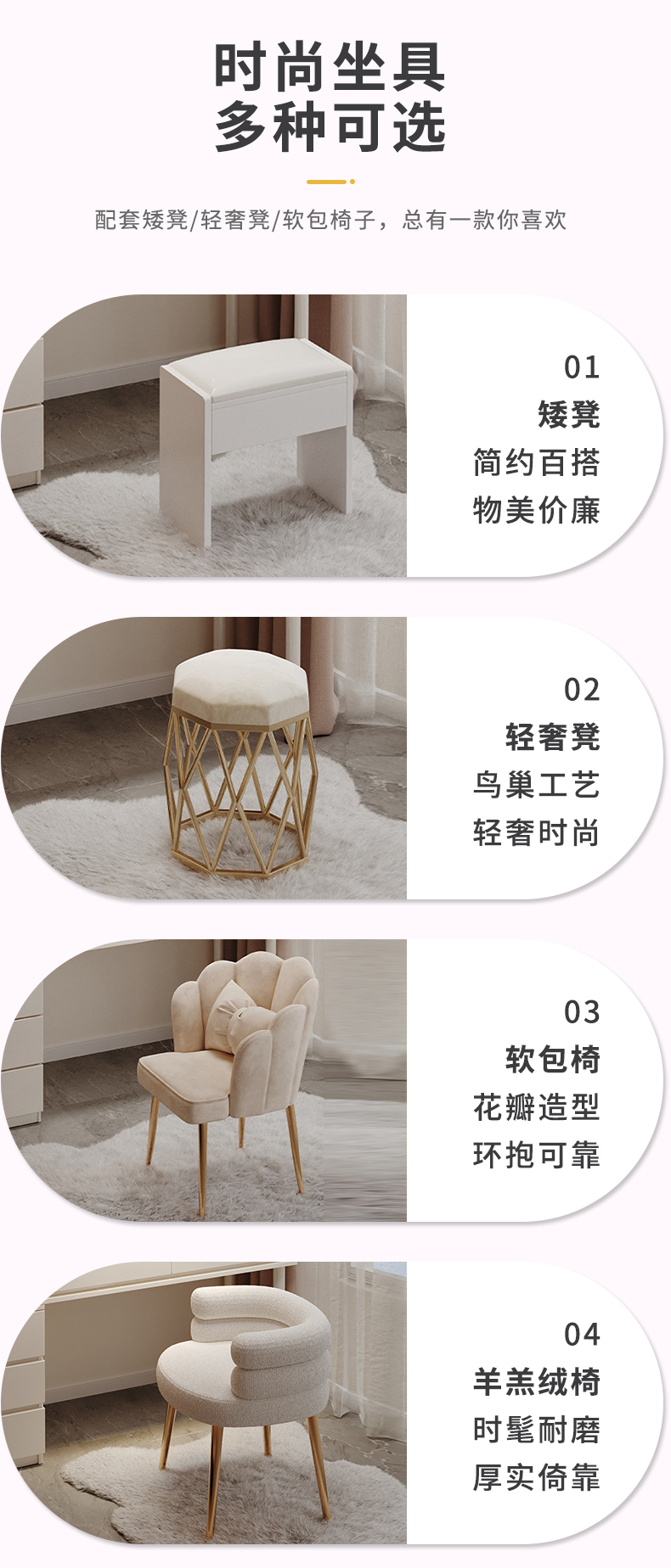 [가벼운 럭셔리 스툴 조합] 80CM 테이블 + LED 거울 + 서랍장 3개 ✓ ✓