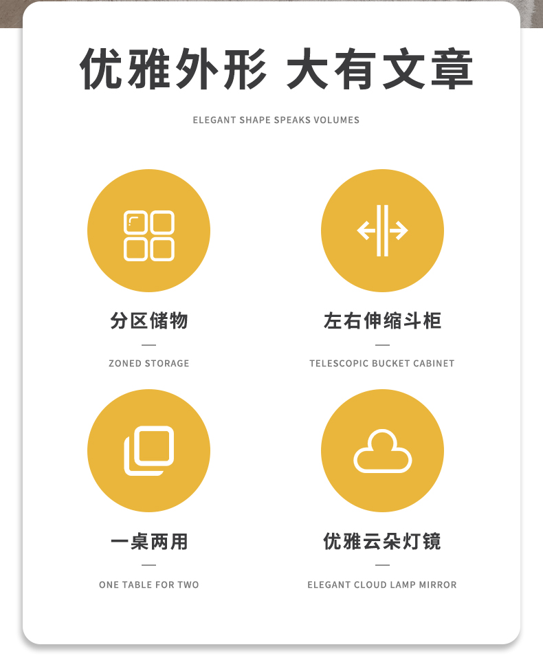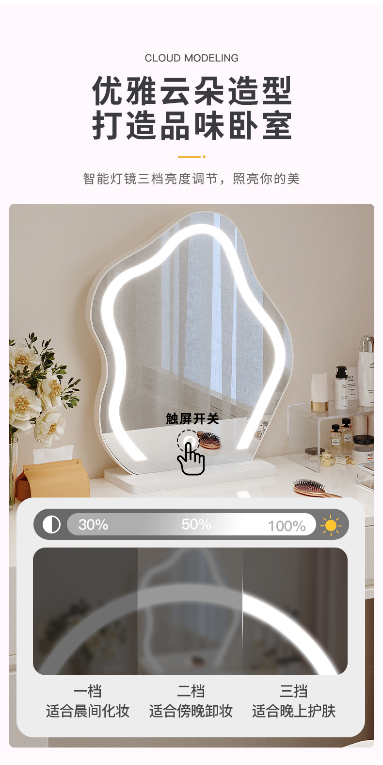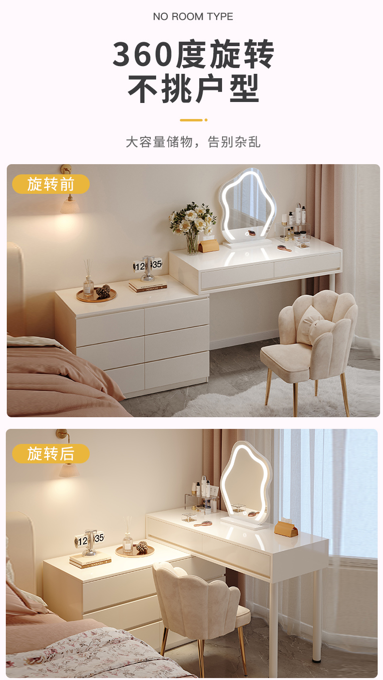 [가벼운 럭셔리 스툴 조합] 80CM 테이블 + LED 거울 + 서랍장 3개 ✓ ✓