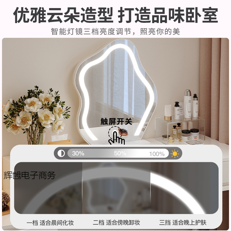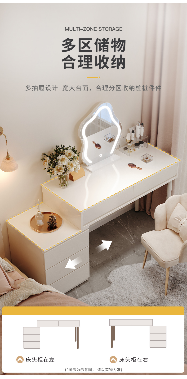[가벼운 럭셔리 스툴 조합] 100CM 테이블 + LED 거울 + 서랍장 3개✓✓
