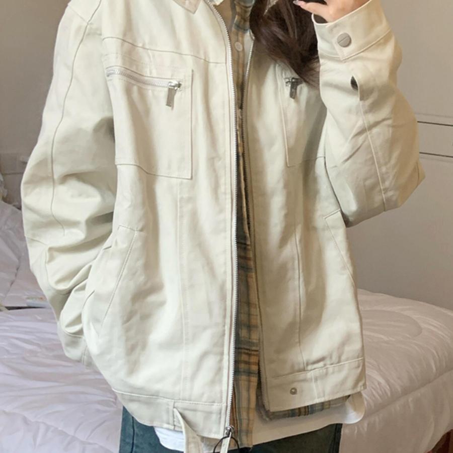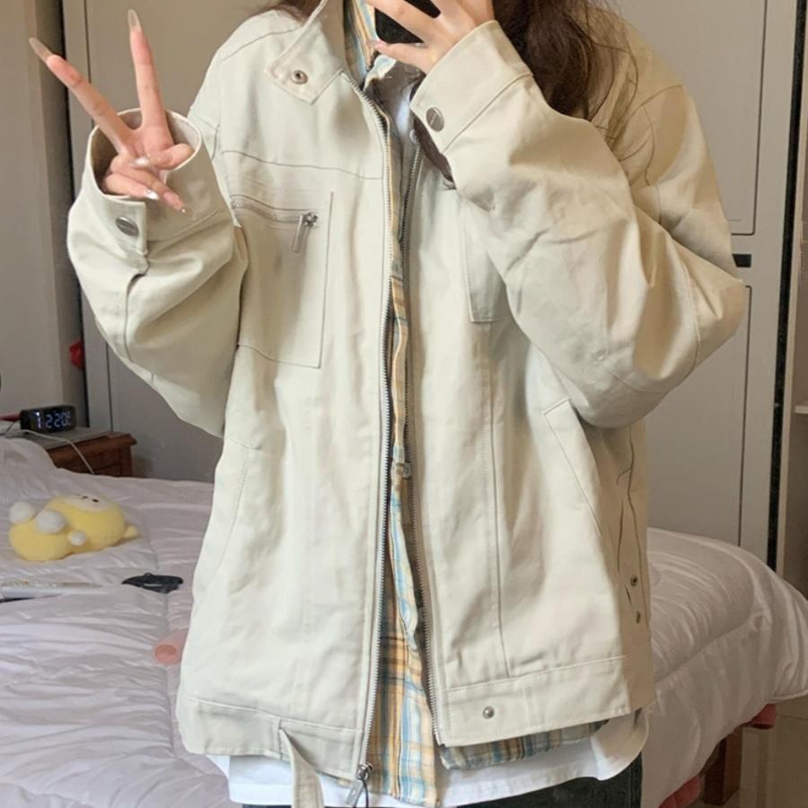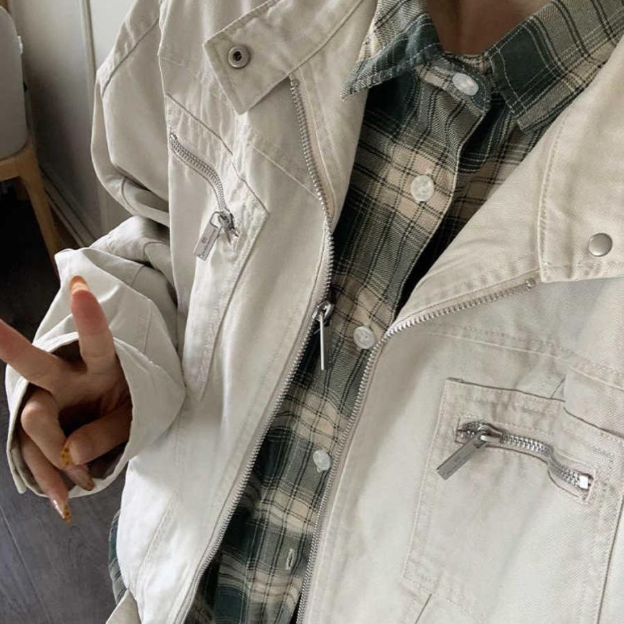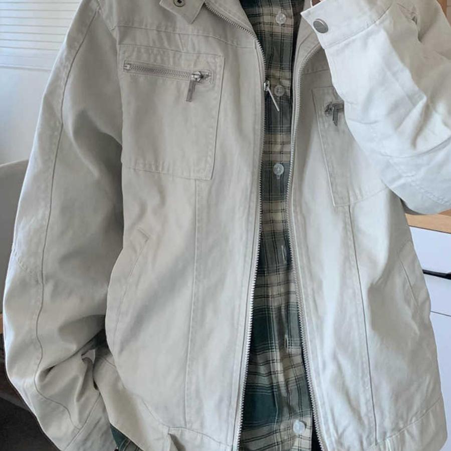 아메리칸 스타일 골동품 빈티지 세탁 캔버스 데님 재킷 남성과 여성의 멀티 포켓 수직 칼라 커플 재킷
