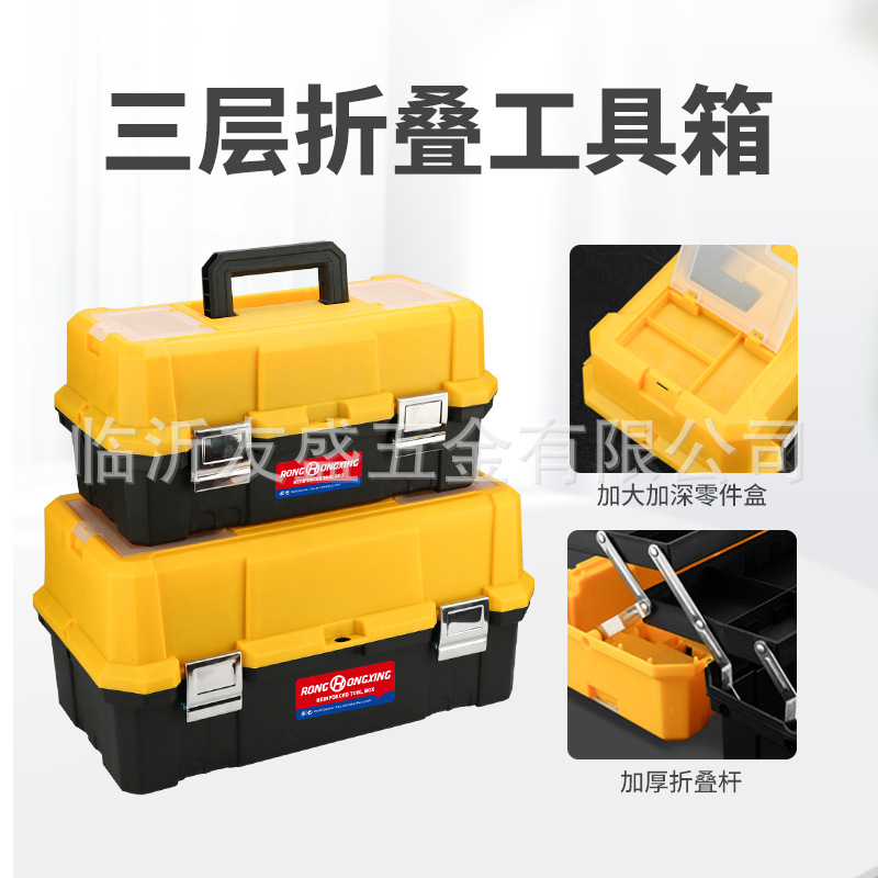하드웨어 도구 상자 3 층 휴대용 플라스틱 접이식 내마모성 휴대용 자동차 저장 대용량 공장 직접 도매
