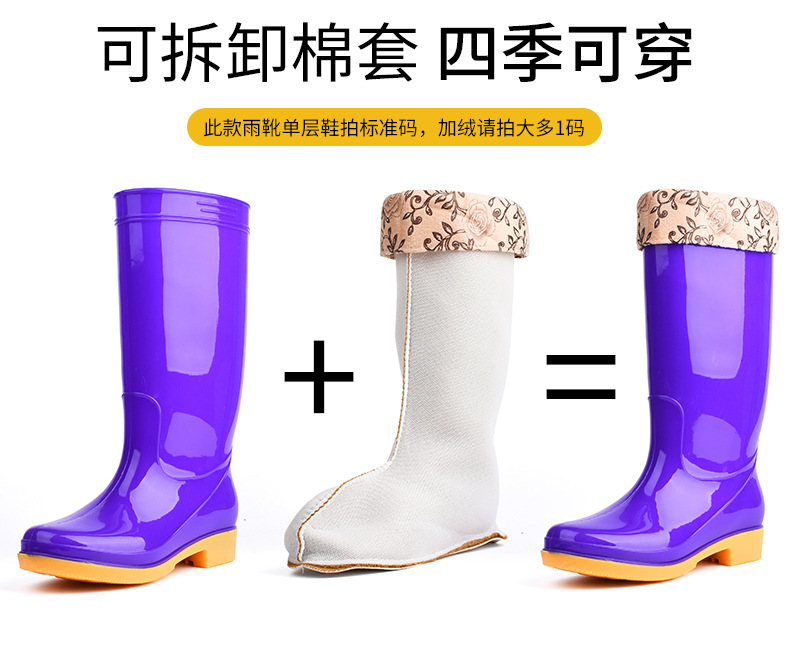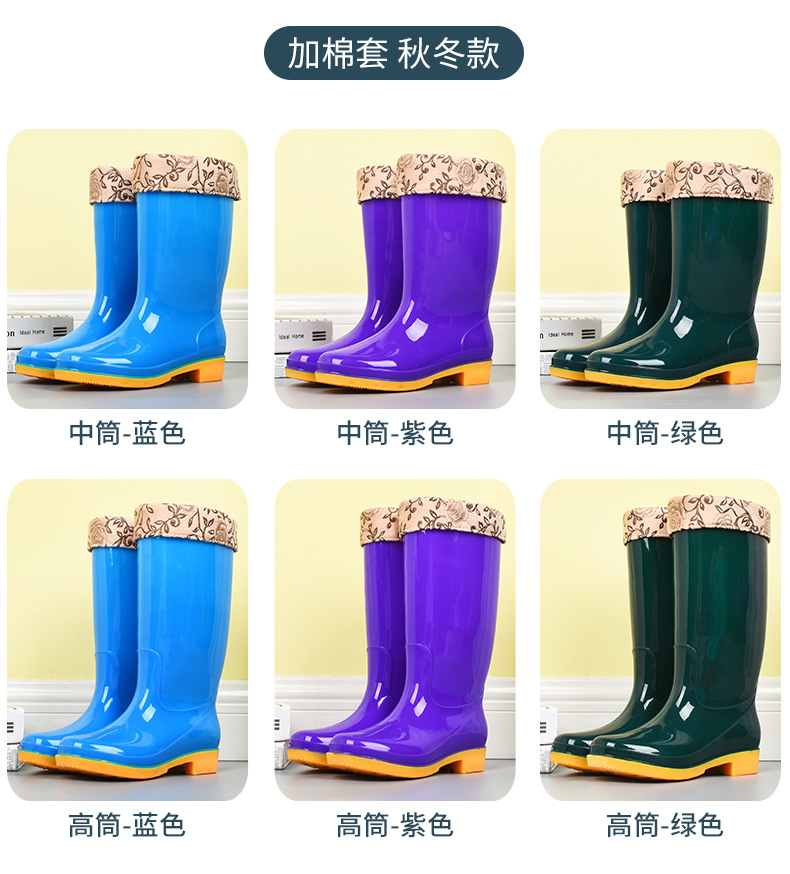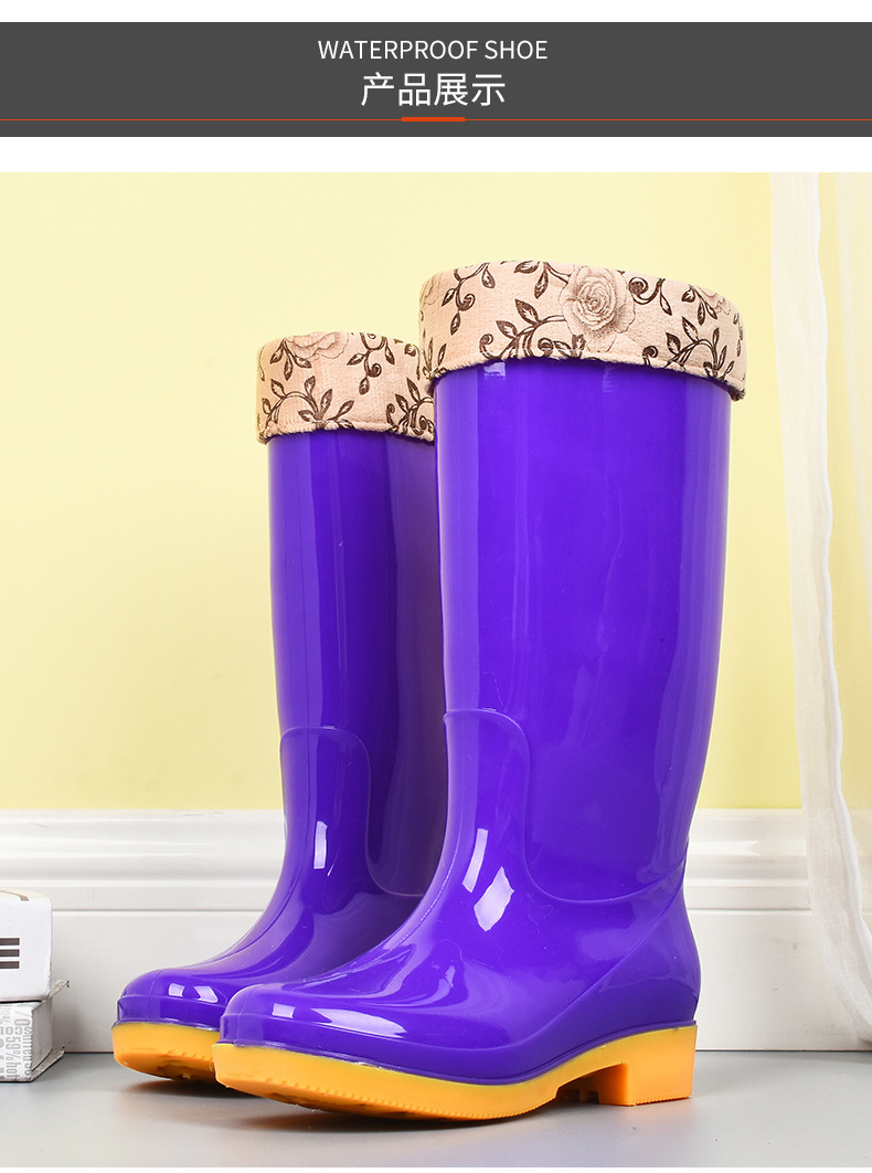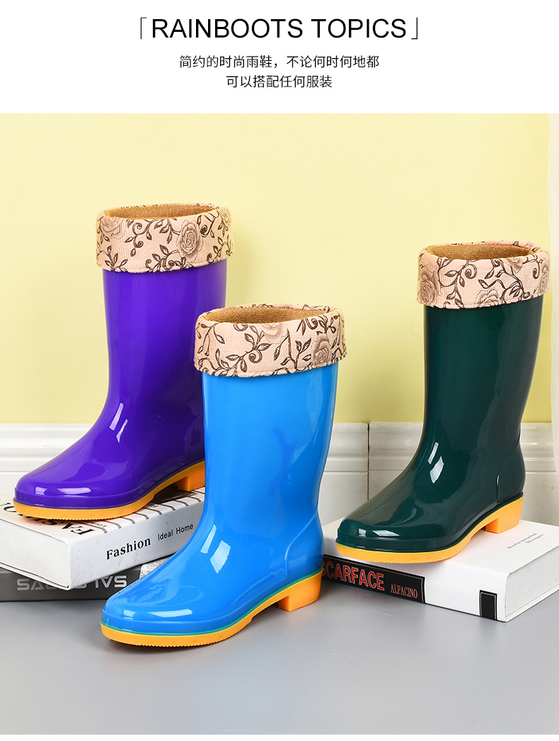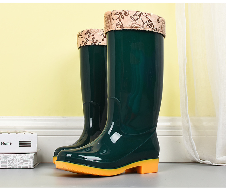 모란무늬 하이탑 워터부츠, 벨벳 워터슈즈, 따뜻한 장화, 하이탑 장화, 여성용 작업고무신, 덧신, 노동보호화