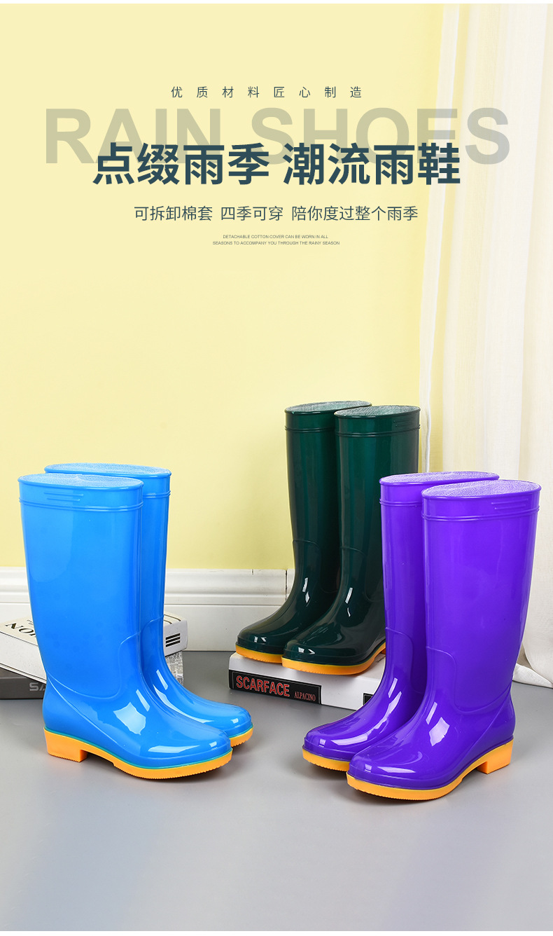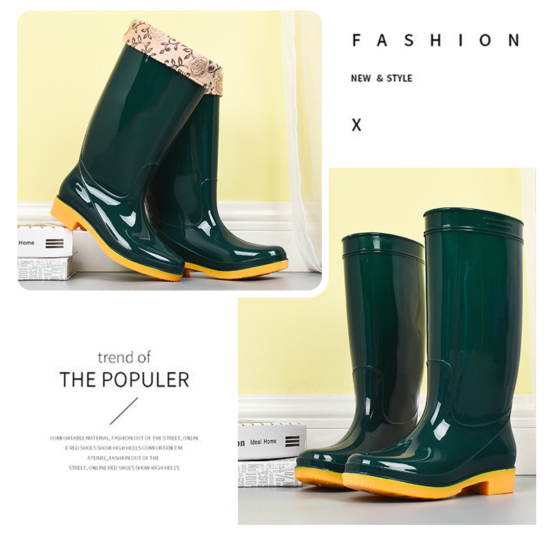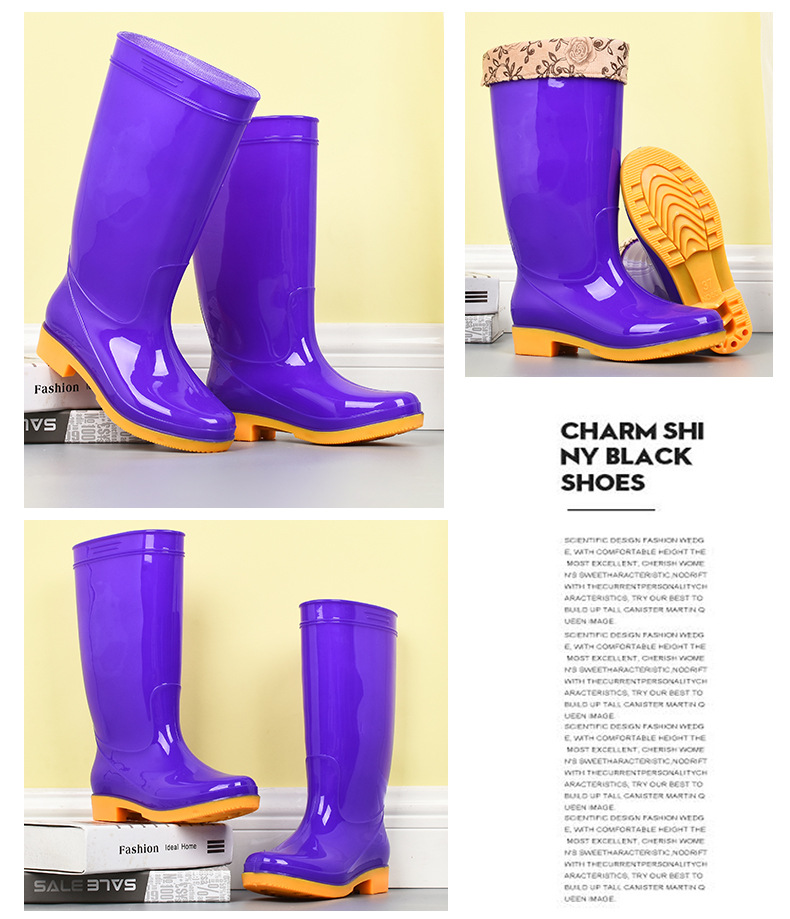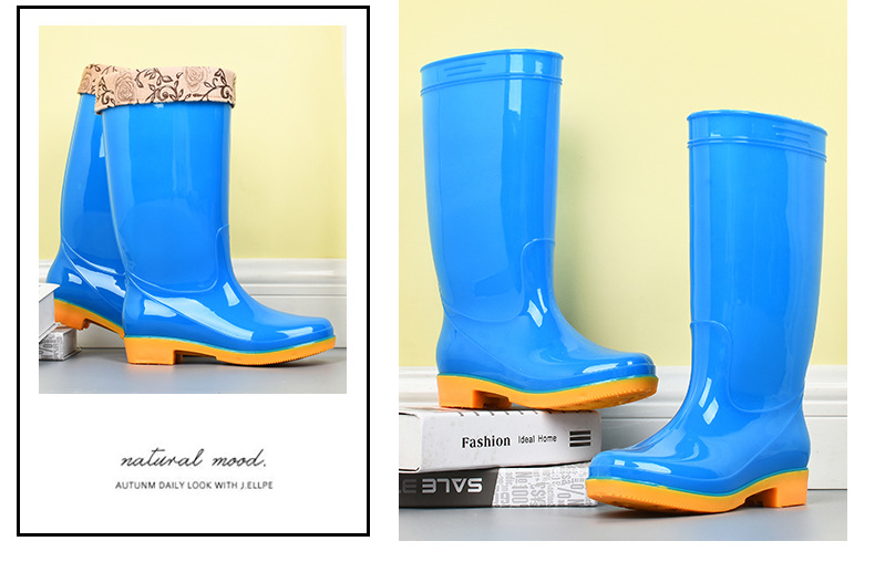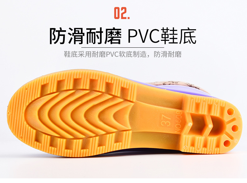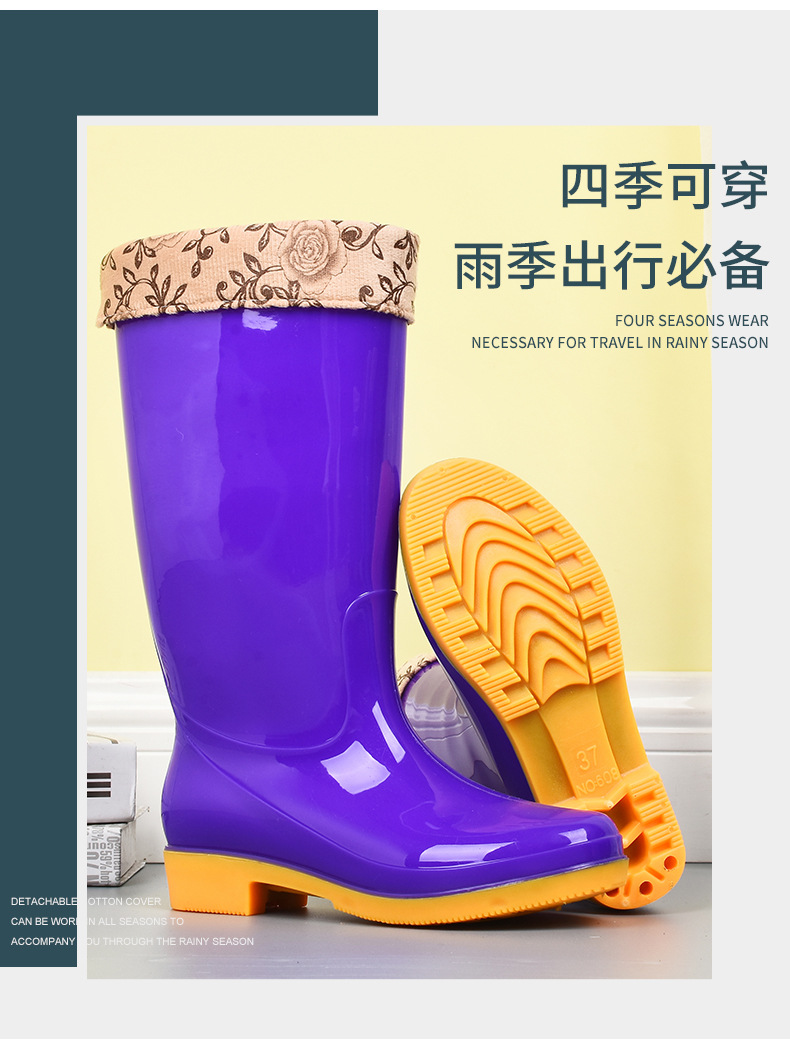 모란무늬 하이탑 워터부츠, 벨벳 워터슈즈, 따뜻한 장화, 하이탑 장화, 여성용 작업고무신, 덧신, 노동보호화