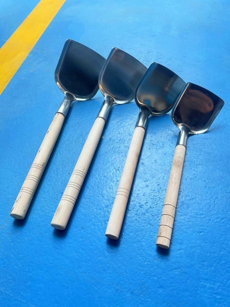 두꺼운 구식 스테인레스 스틸 주걱, 가정용 요리 주걱, 요리용 숟가락, 주방 대형 나무 손잡이, 화상 방지, 마을 주걱
