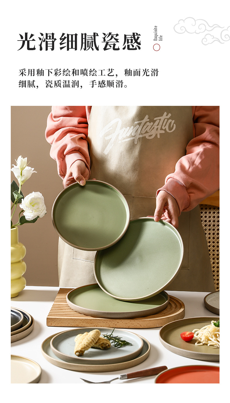 조잡한 도자기 식기 일본식 서양 식판 가정용 접시 상업용 스테이크 플레이트 레스토랑 호텔 파스타 플레이트 바베큐 숍 플레이트