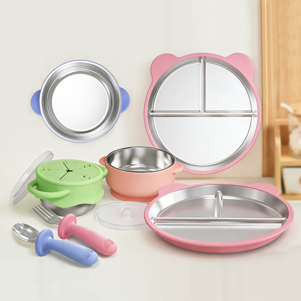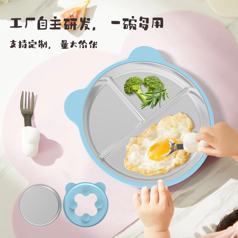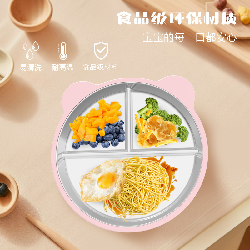 品名:硅胶分格辅食餐盘【含硅胶吸盘套】