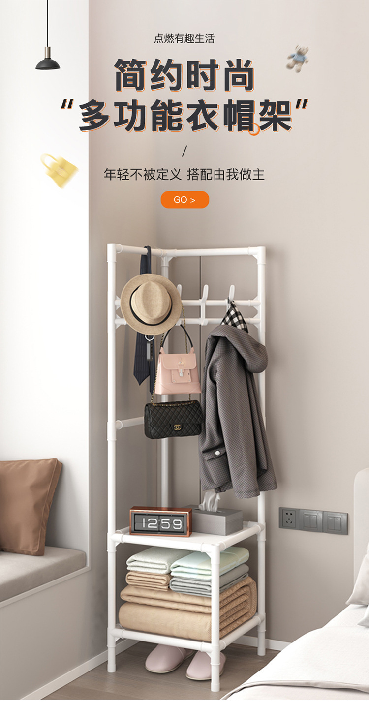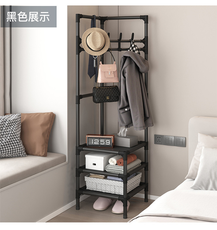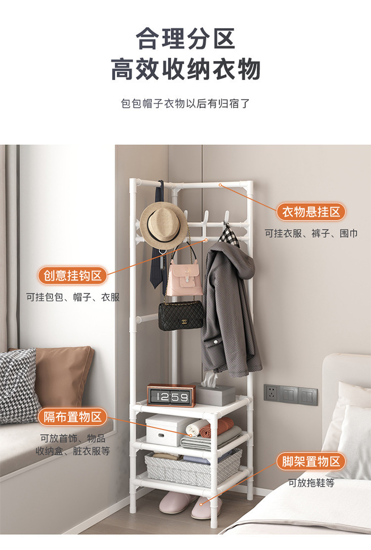 새로운 침실 코너 옷걸이 코너 코트 랙 다층 조립 의류 선반 가정용 옷장 바닥 보관 랙