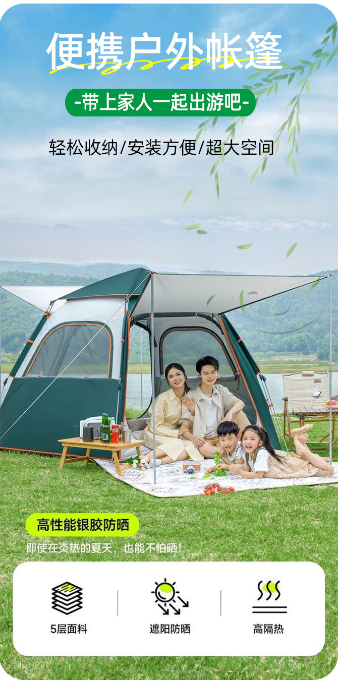 텐트 야외 캠핑 자동 설치 방수 텐트 여행용 자외선 차단 실내 어린이 보온 텐트