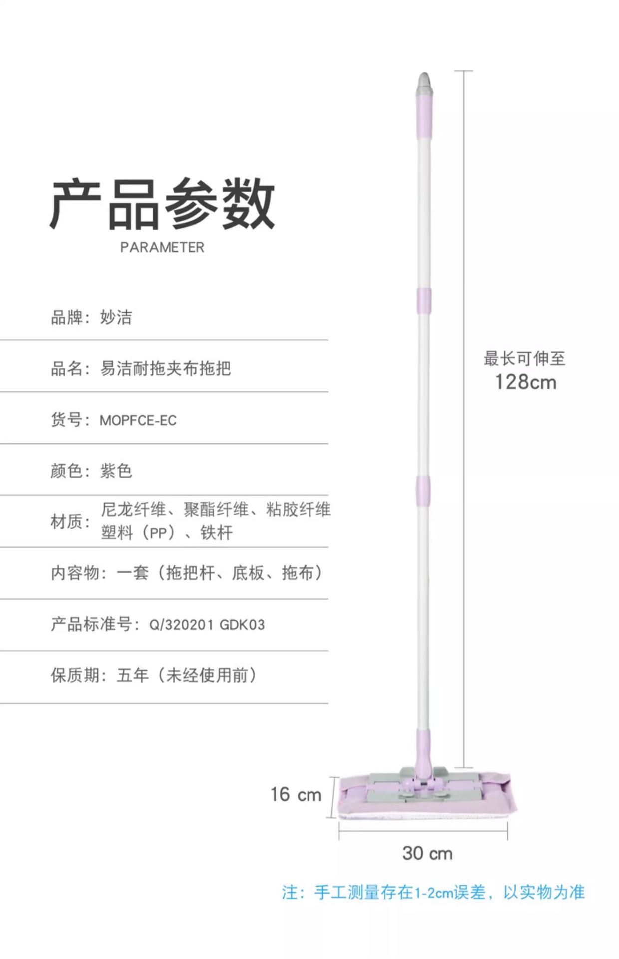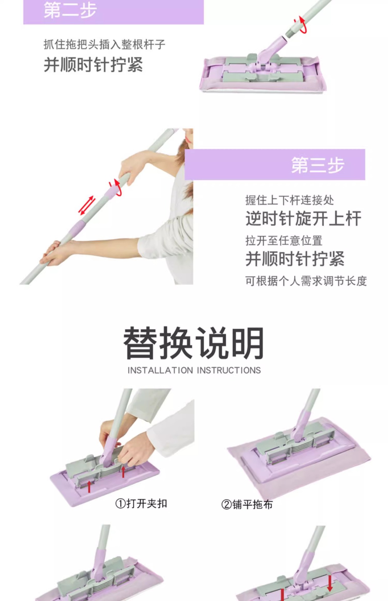 Miaojie 플랫 걸레 가정용 원걸레 클린 클램프 천 걸레 바닥 걸레 건조 및 습식 이중 사용 걸레 바닥 걸레 창 청소 가능
