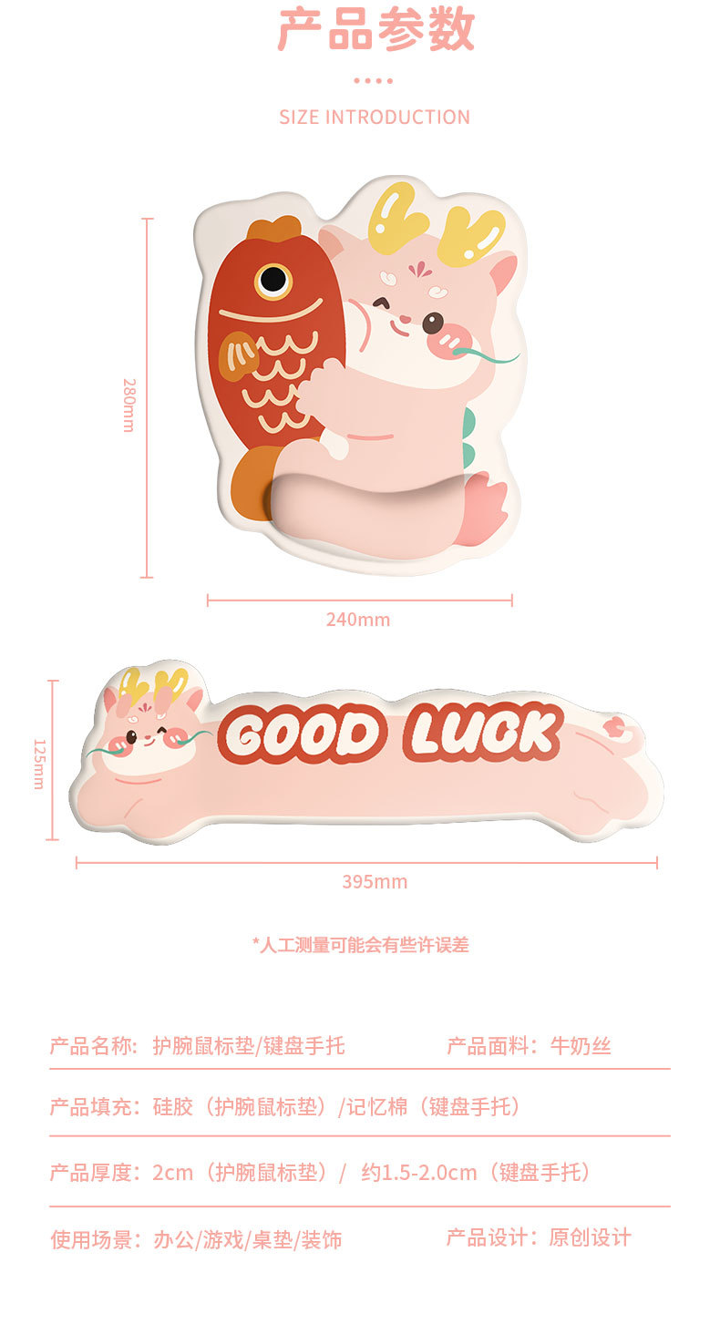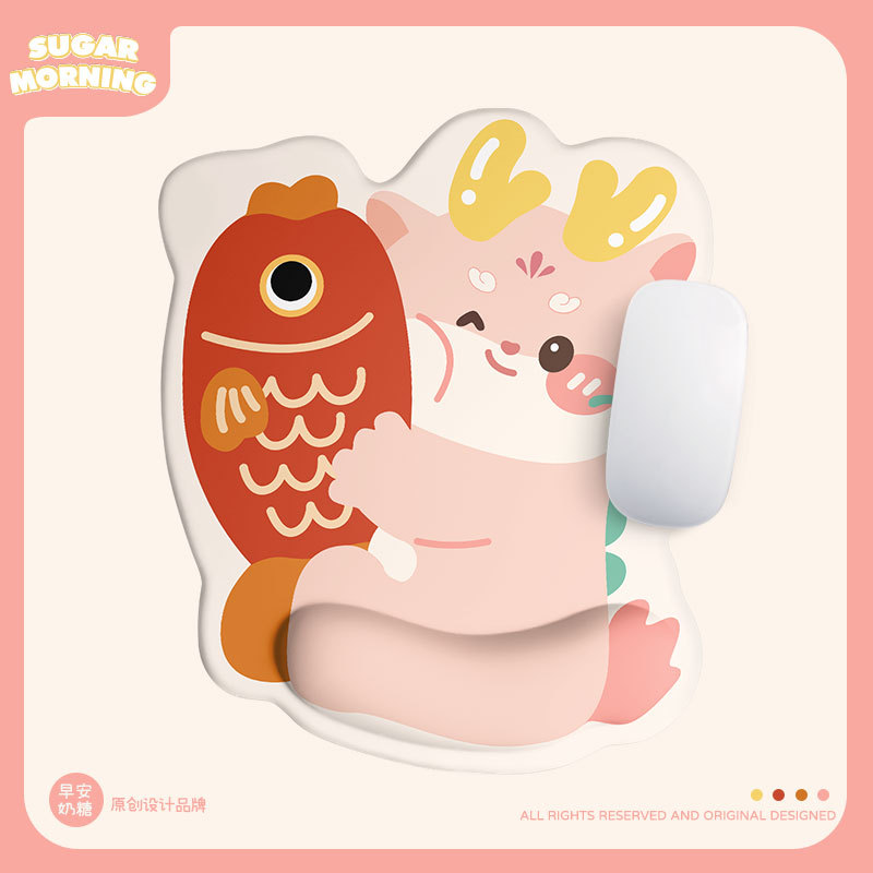 새로운 만화 행운의 잉어 드래곤 손목 마우스 패드 키보드 손 받침대 실리콘 크리 에이 티브 오피스 선물 귀여운 소녀