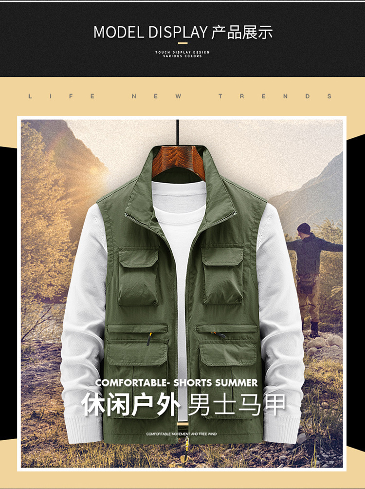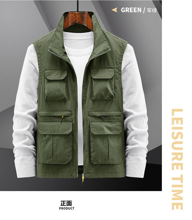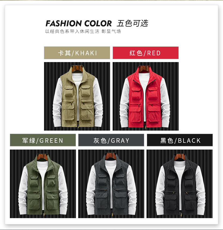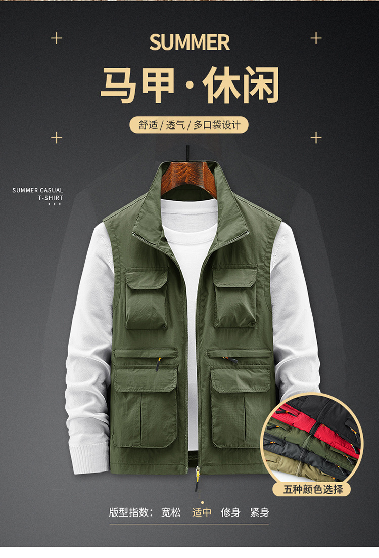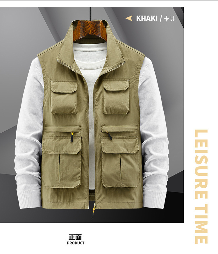 국경 간 멀티 포켓 야외 사진 작업복 민소매 조끼 봄, 가을 얇은 느슨한 대형 캐주얼 조끼