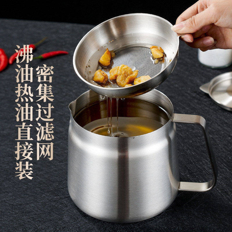 ✅ 국경 간 304 스테인레스 스틸 오일 필터 주방 프라이팬 가정용 필터 주전자 오일 저장 탱크 분리 오일 슬러지 블랙 젤리