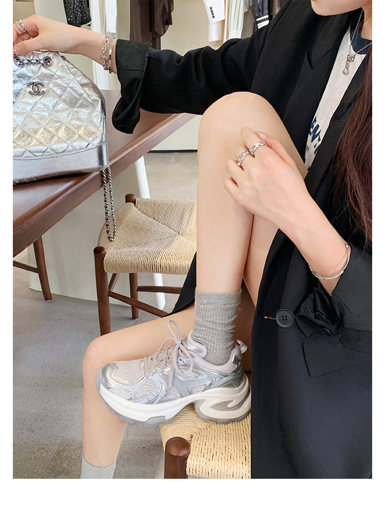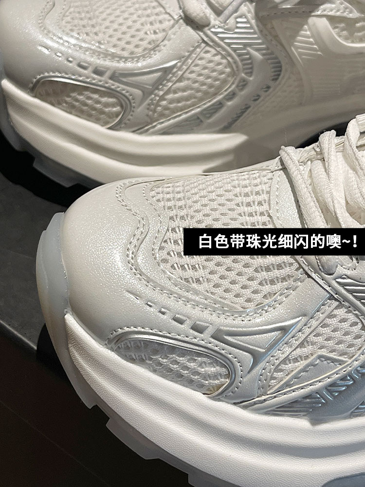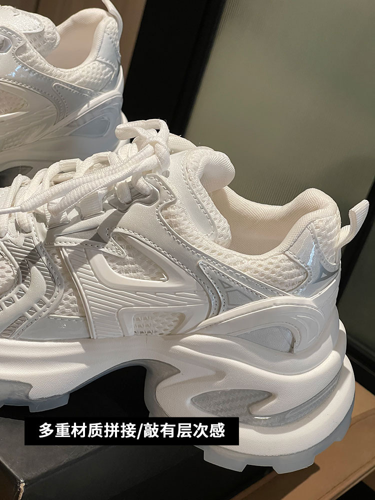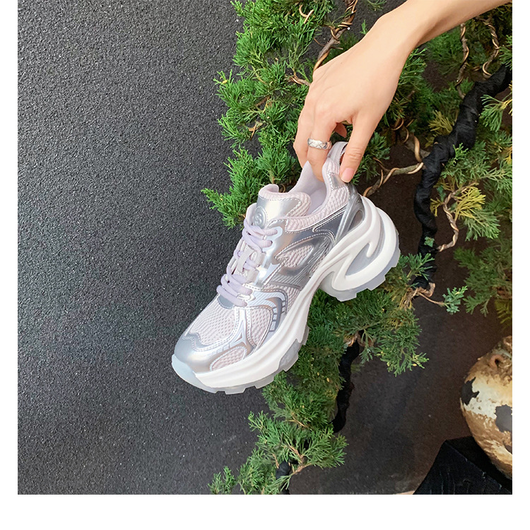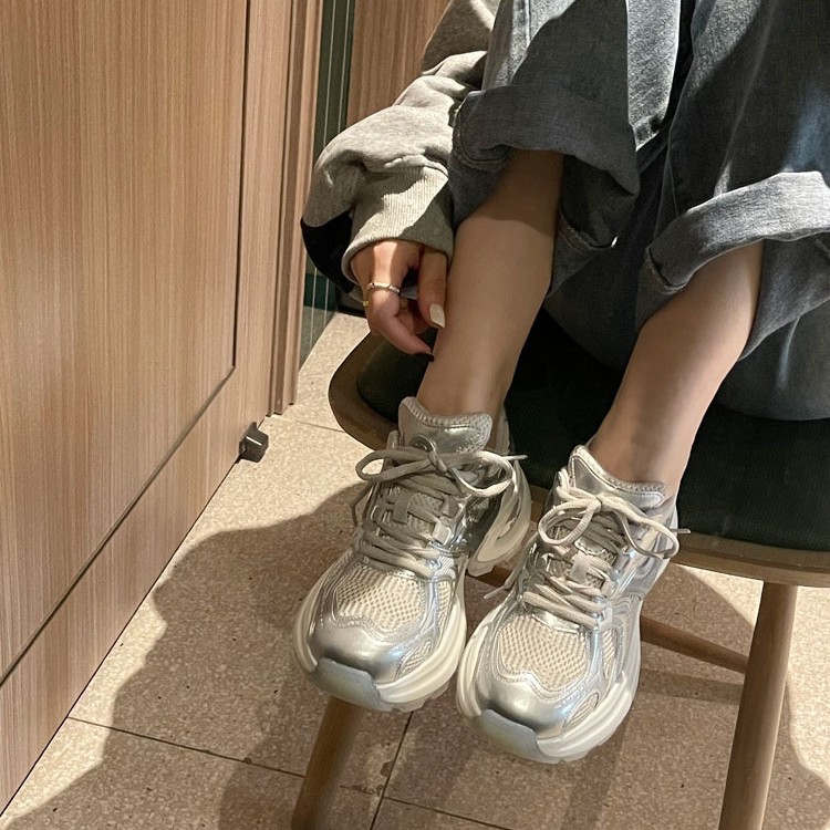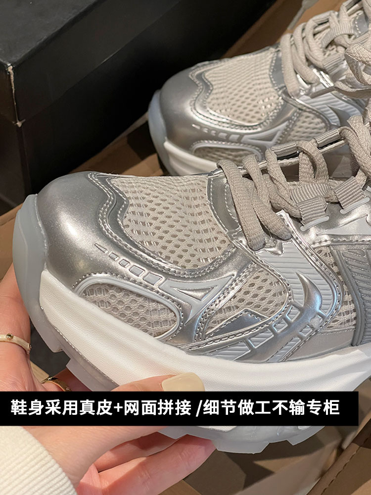 두꺼운 밑창 실버색 여성용 아빠 신발 2025 신상 통기성 키높이 인스타 트렌드 캐주얼 운동화 원두 메쉬 하이힐