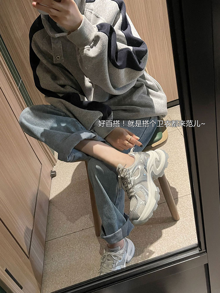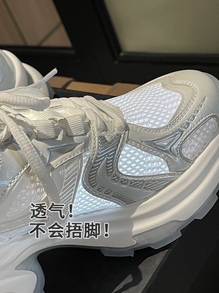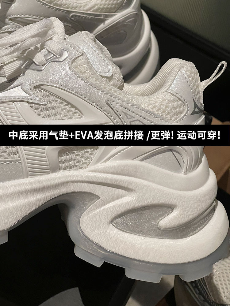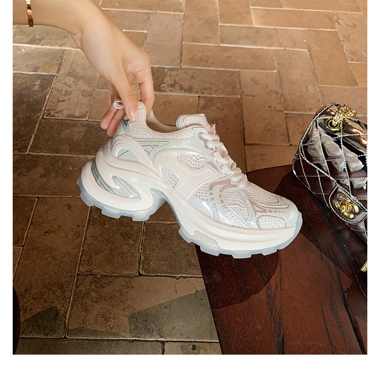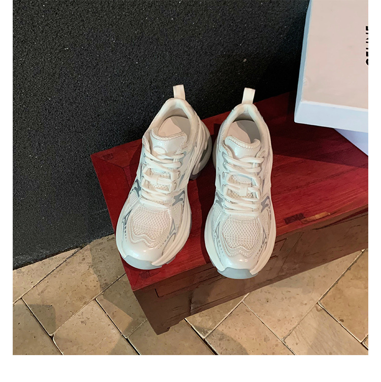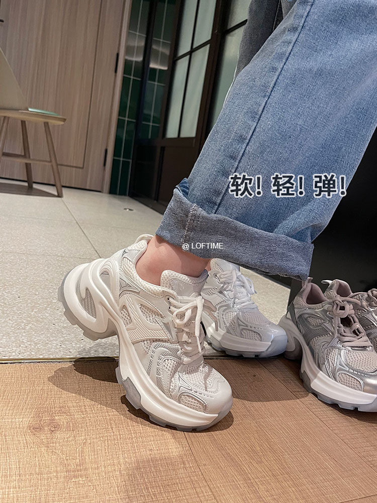 두꺼운 밑창 실버색 여성용 아빠 신발 2025 신상 통기성 키높이 인스타 트렌드 캐주얼 운동화 원두 메쉬 하이힐