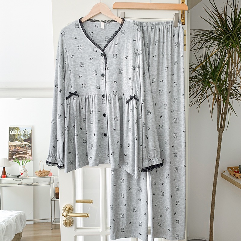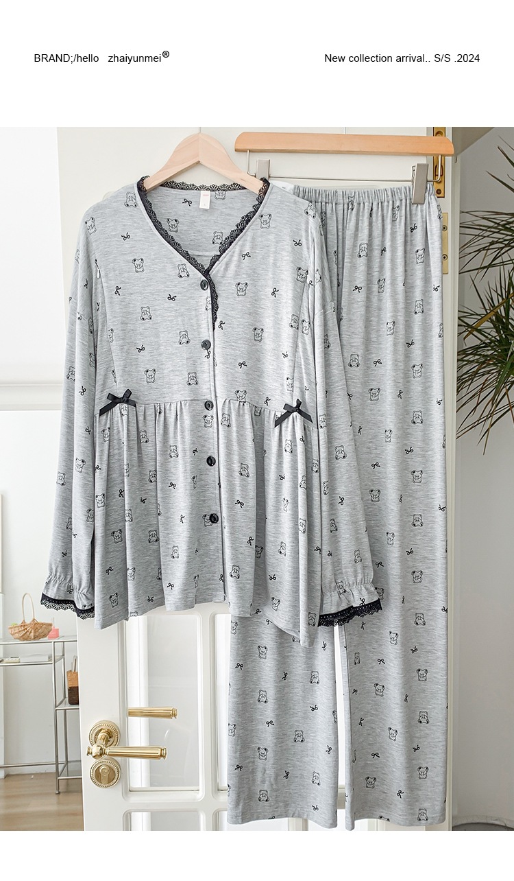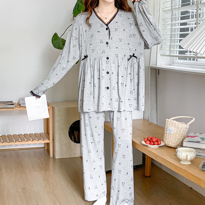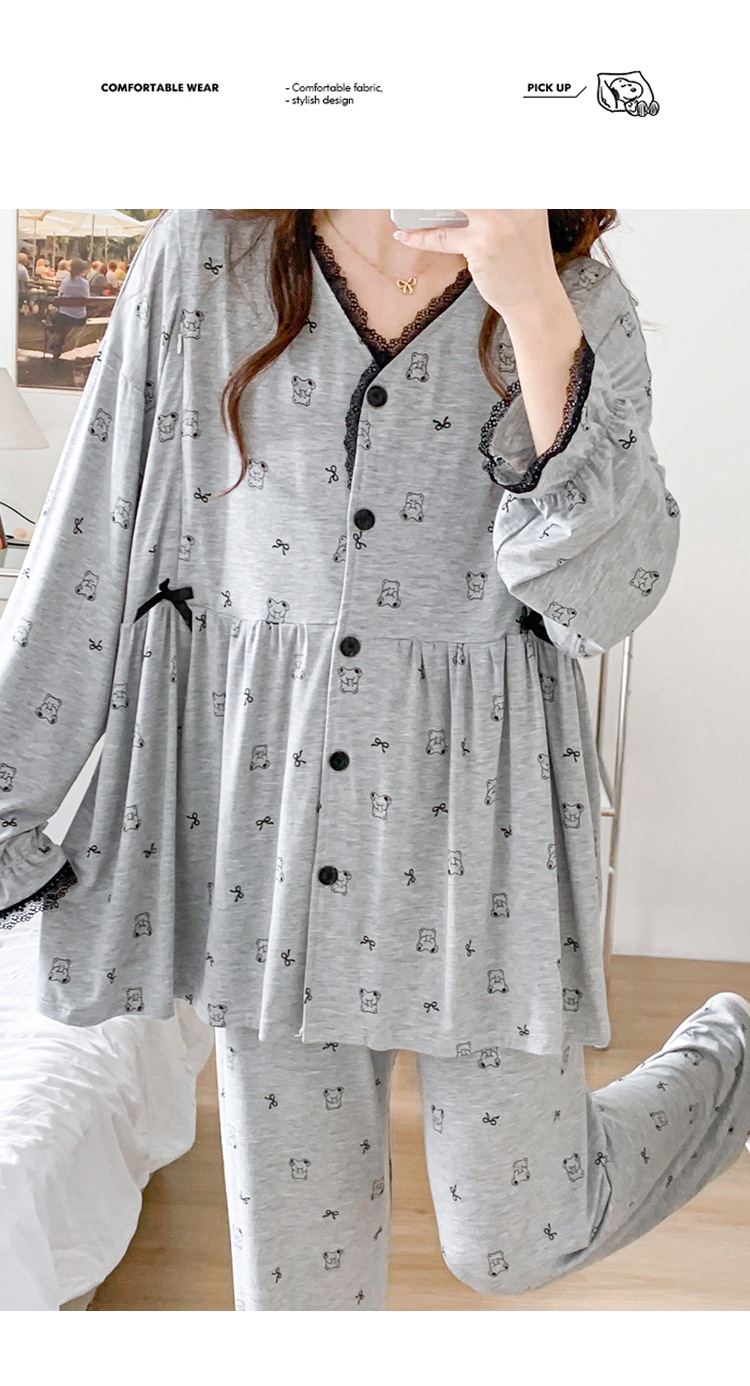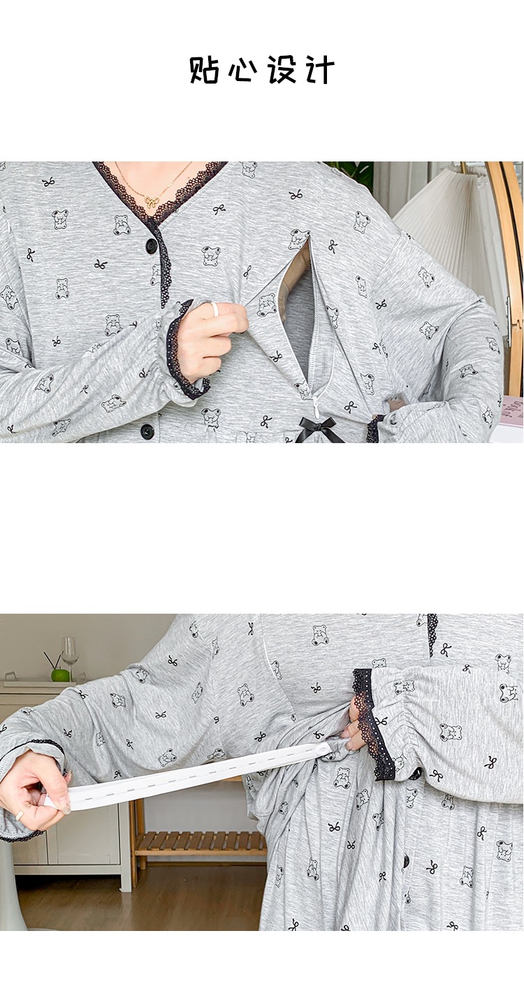 신작 봄 여름 출산복 모달 코튼 투피스 레이스 엄마 캐주얼 수유 잠옷 출산 홈웨어