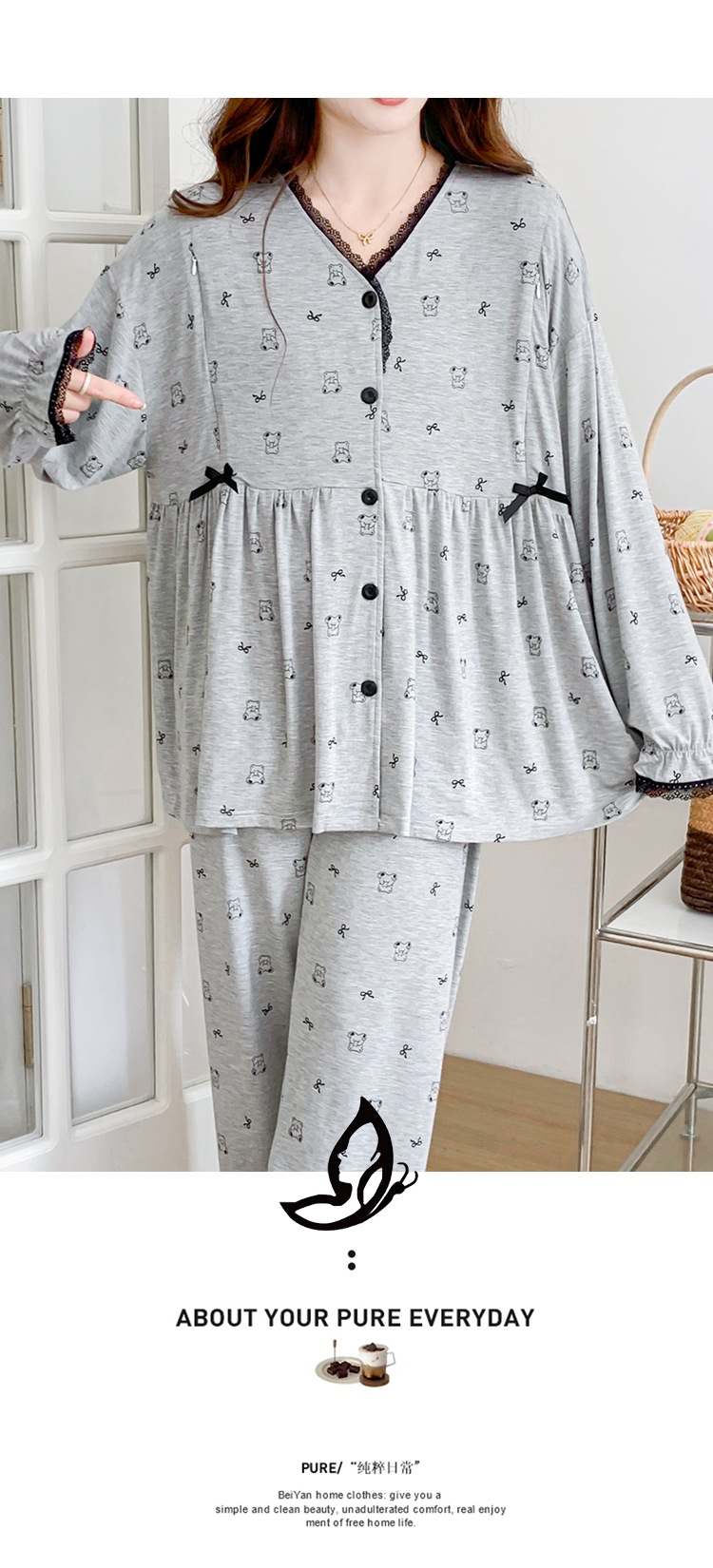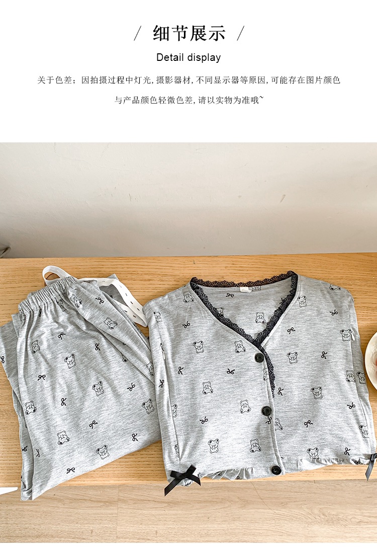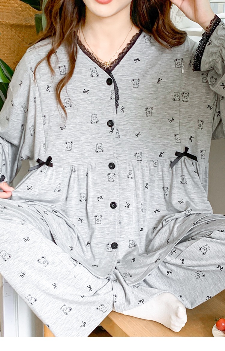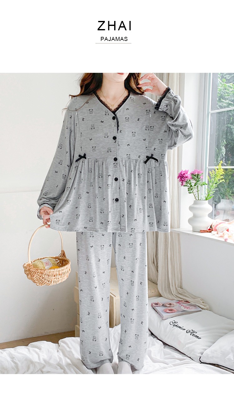 신작 봄 여름 출산복 모달 코튼 투피스 레이스 엄마 캐주얼 수유 잠옷 출산 홈웨어