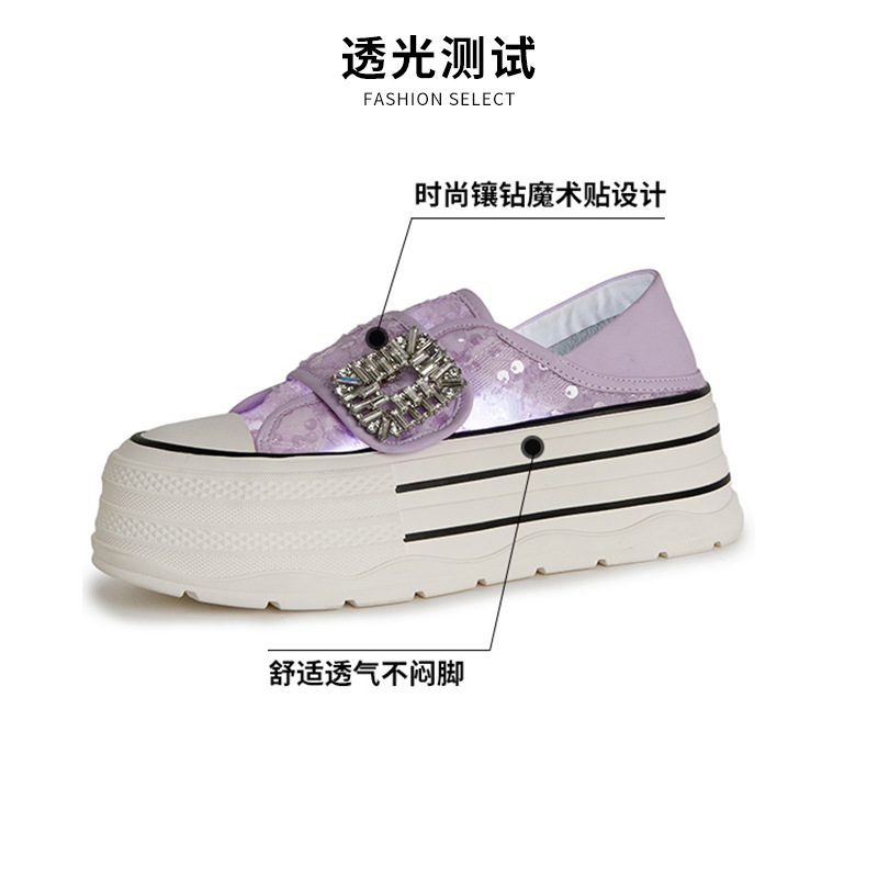 2025 여름 새로운 두꺼운 밑창 캐주얼 벨크로 보드 슈즈 학생 올 매치 다이아몬드 버클 통기성 스퀸 메쉬 여성용 신발