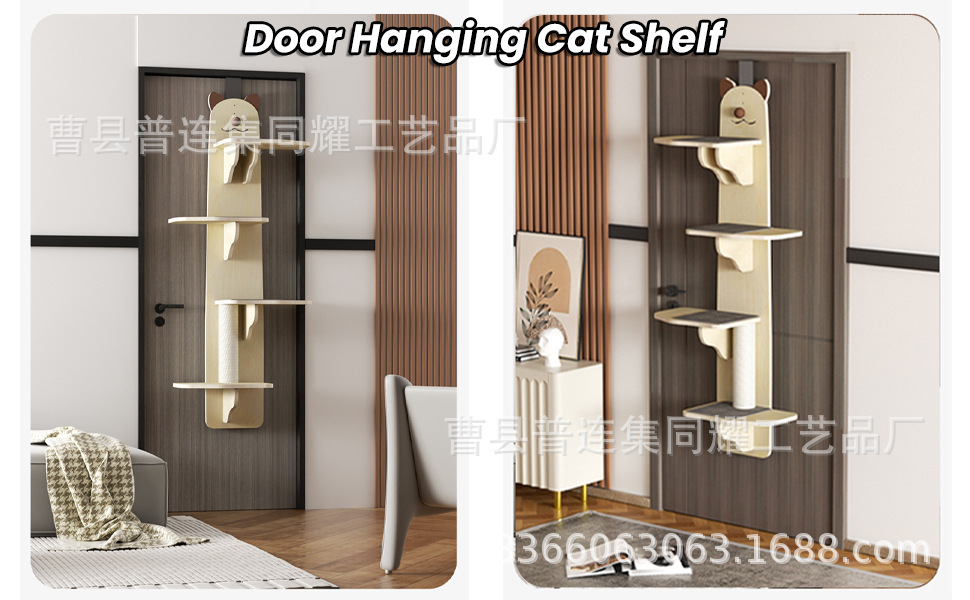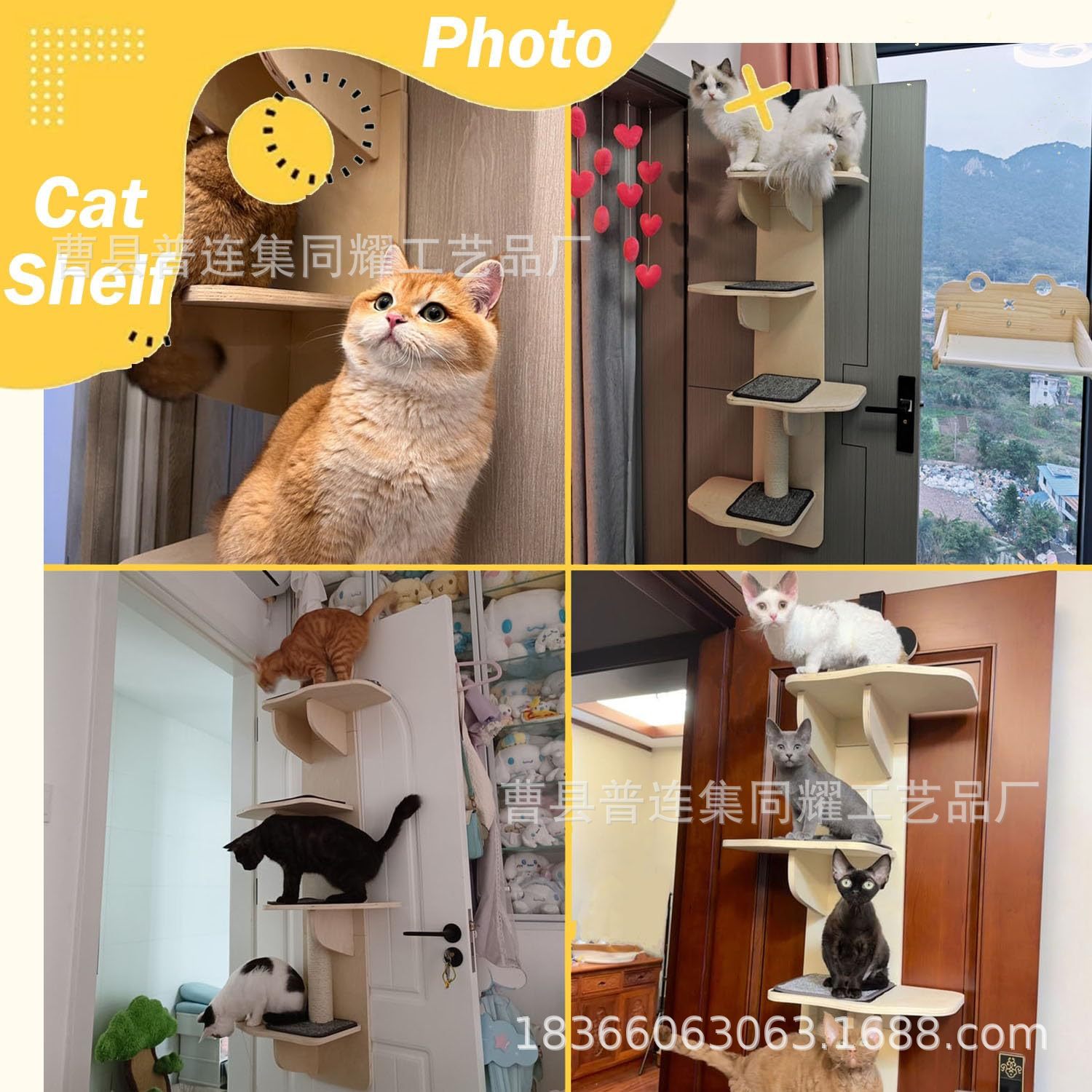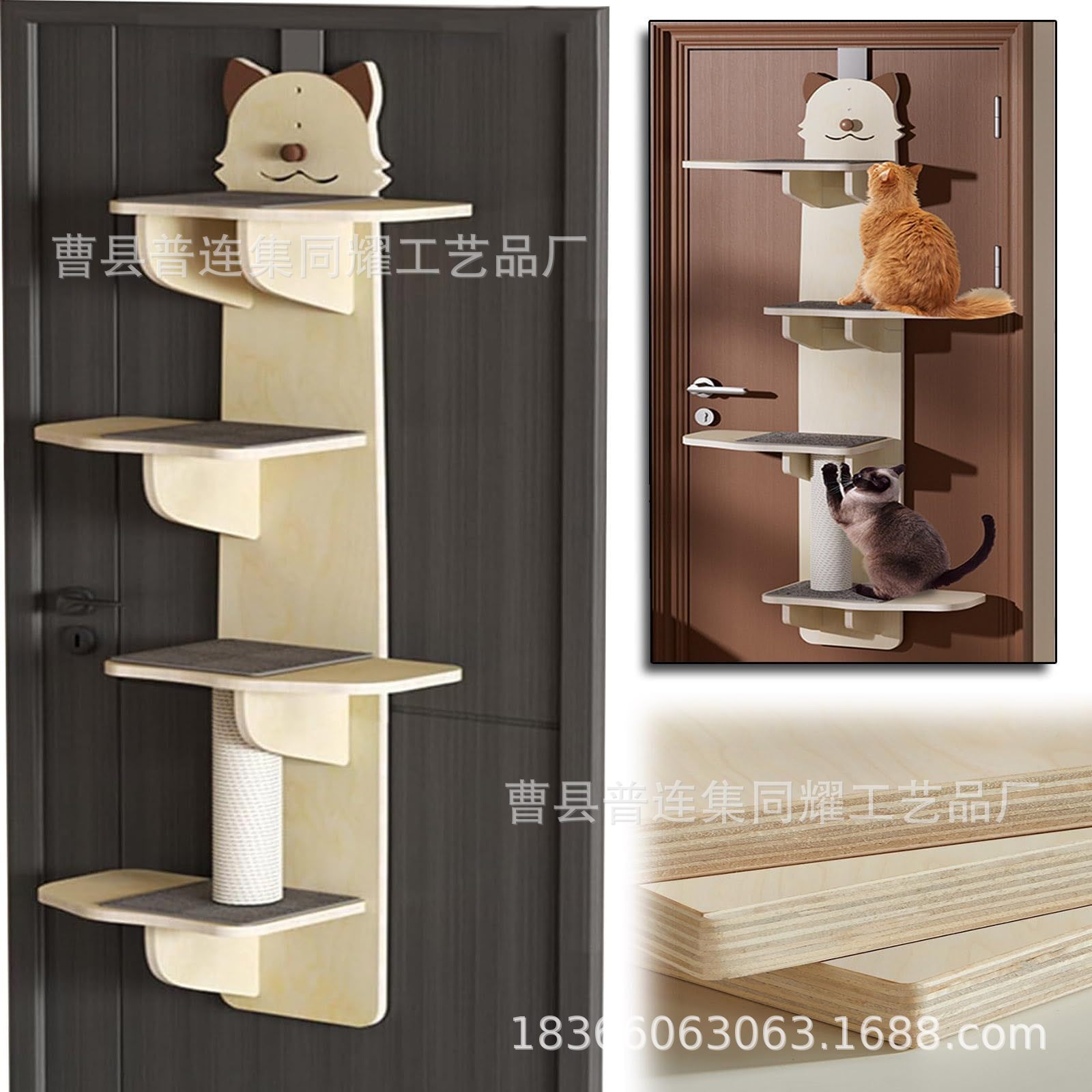 문걸이형 고양이 클라이밍 프레임, 고양이 둥지, 고양이 트리 일체형, 공간 절약형, 소형 원목 고양이 점프 플랫폼, 펀칭 없는 벽걸이형 고양이 프레임