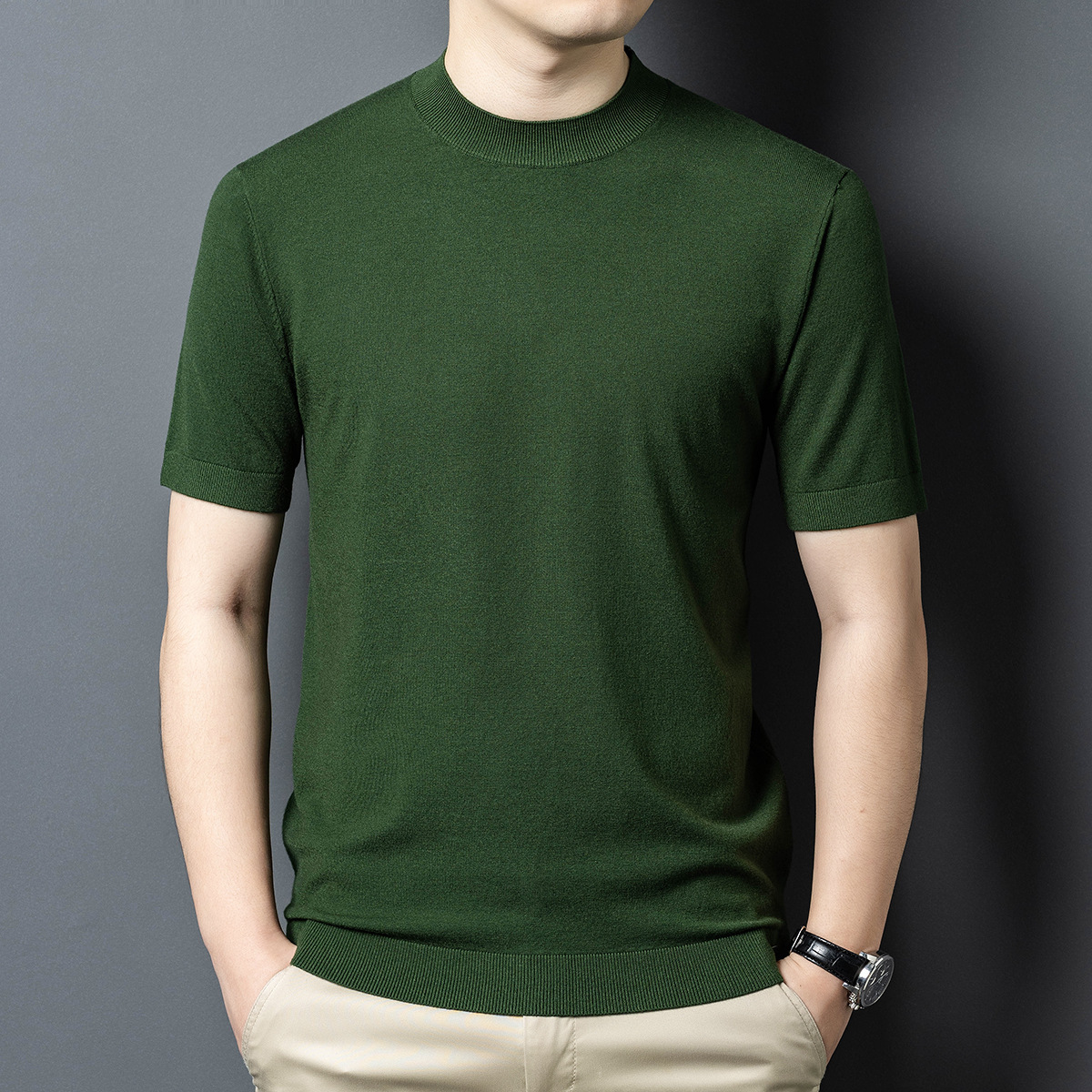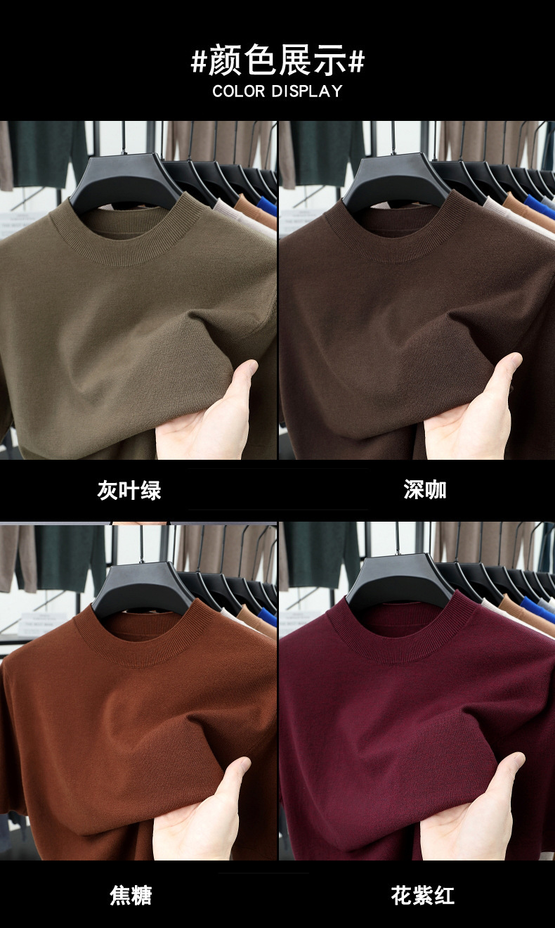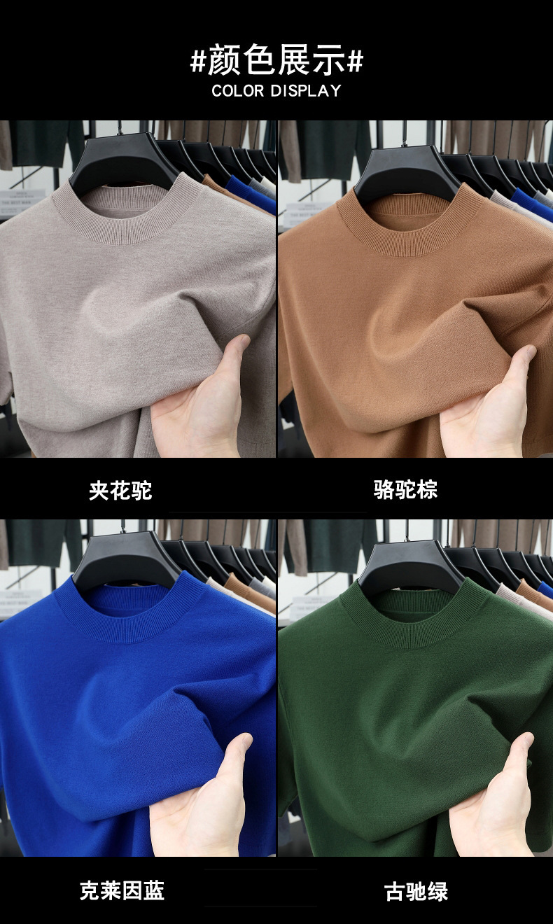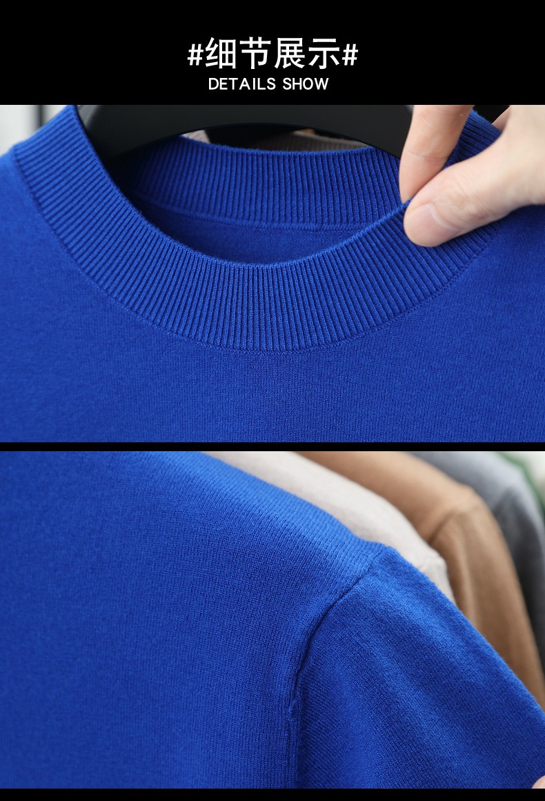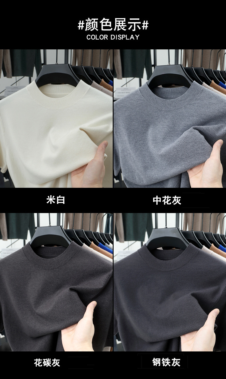 남성용 생방송 반팔 스웨터, 사계절 하프 터틀넥, 솔리드 컬러 트렌디, 다용도 캐주얼 바텀 셔츠, 남성용 티셔츠