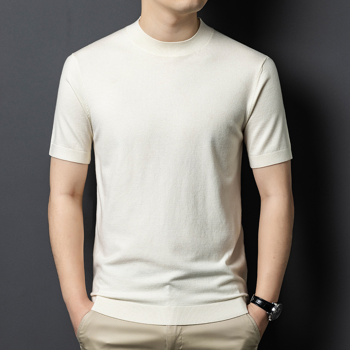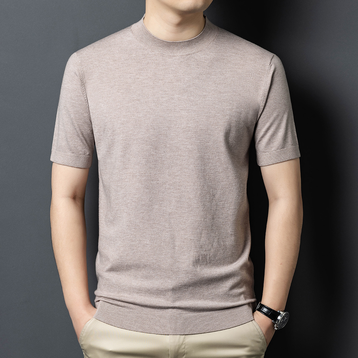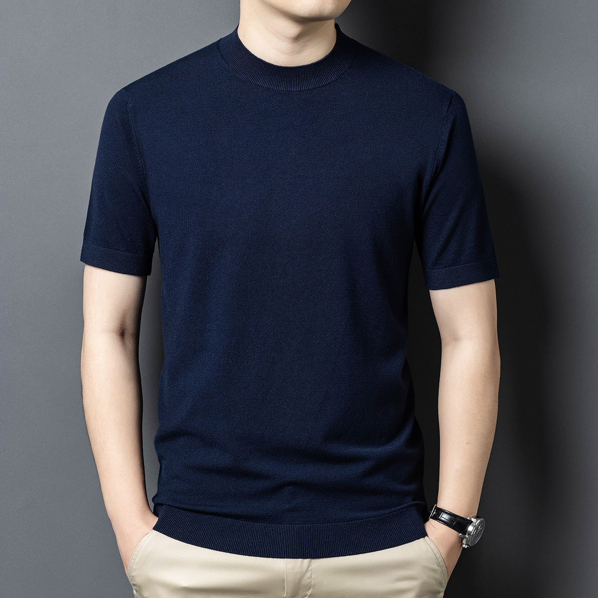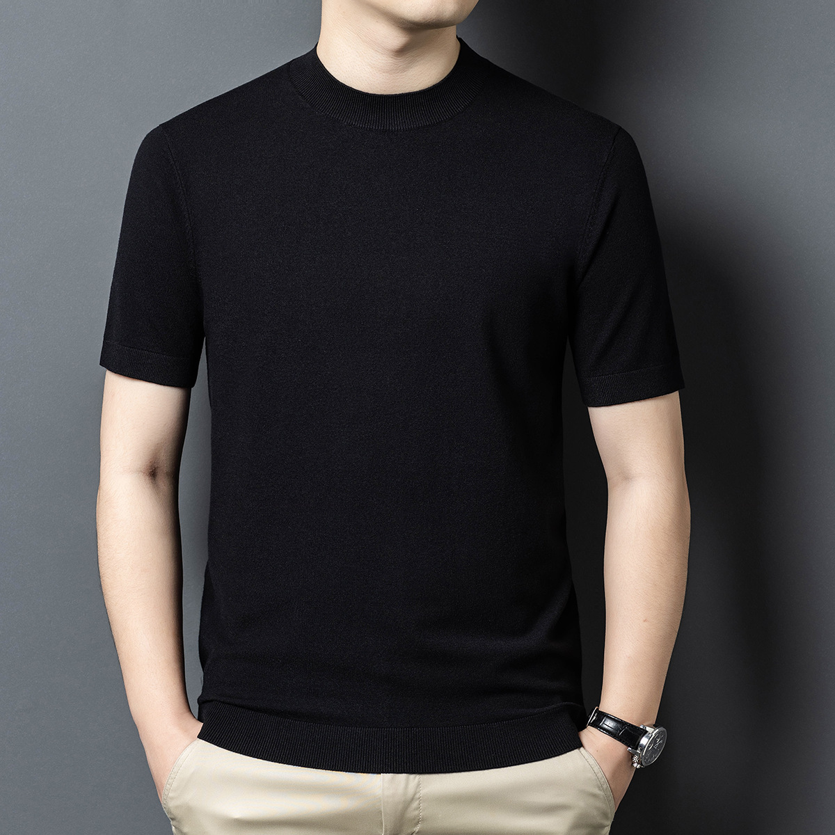 남성용 생방송 반팔 스웨터, 사계절 하프 터틀넥, 솔리드 컬러 트렌디, 다용도 캐주얼 바텀 셔츠, 남성용 티셔츠