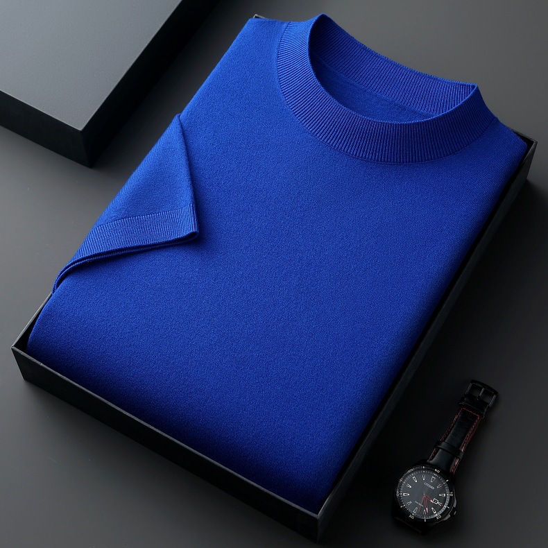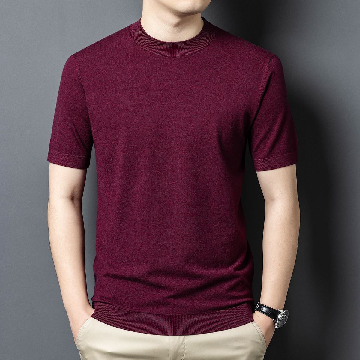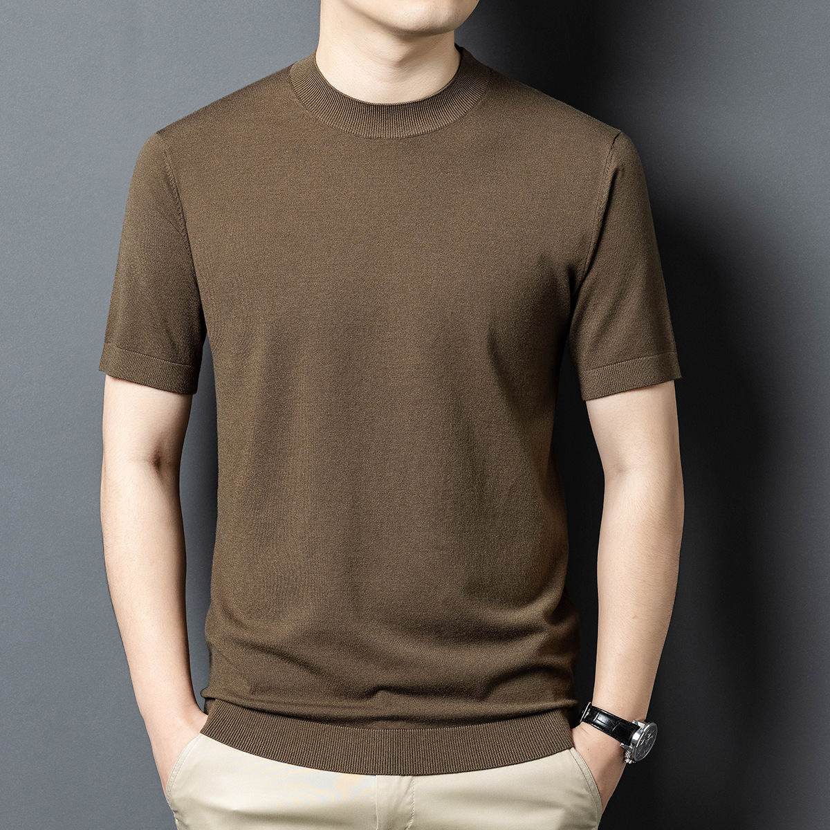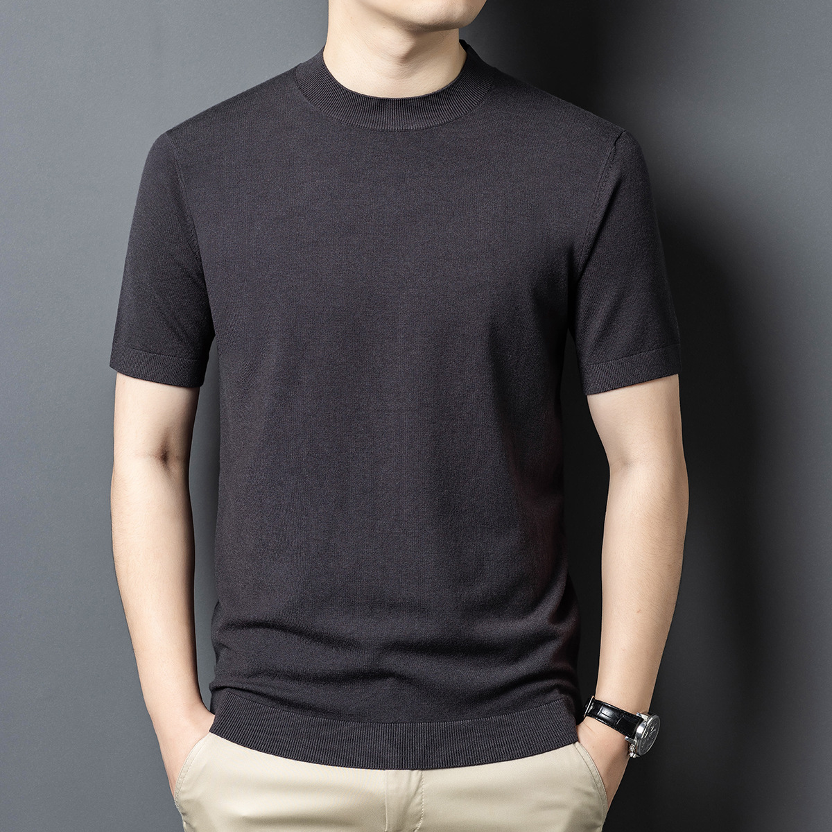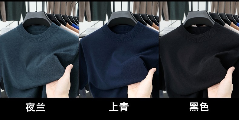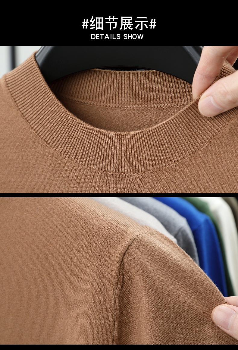 남성용 생방송 반팔 스웨터, 사계절 하프 터틀넥, 솔리드 컬러 트렌디, 다용도 캐주얼 바텀 셔츠, 남성용 티셔츠
