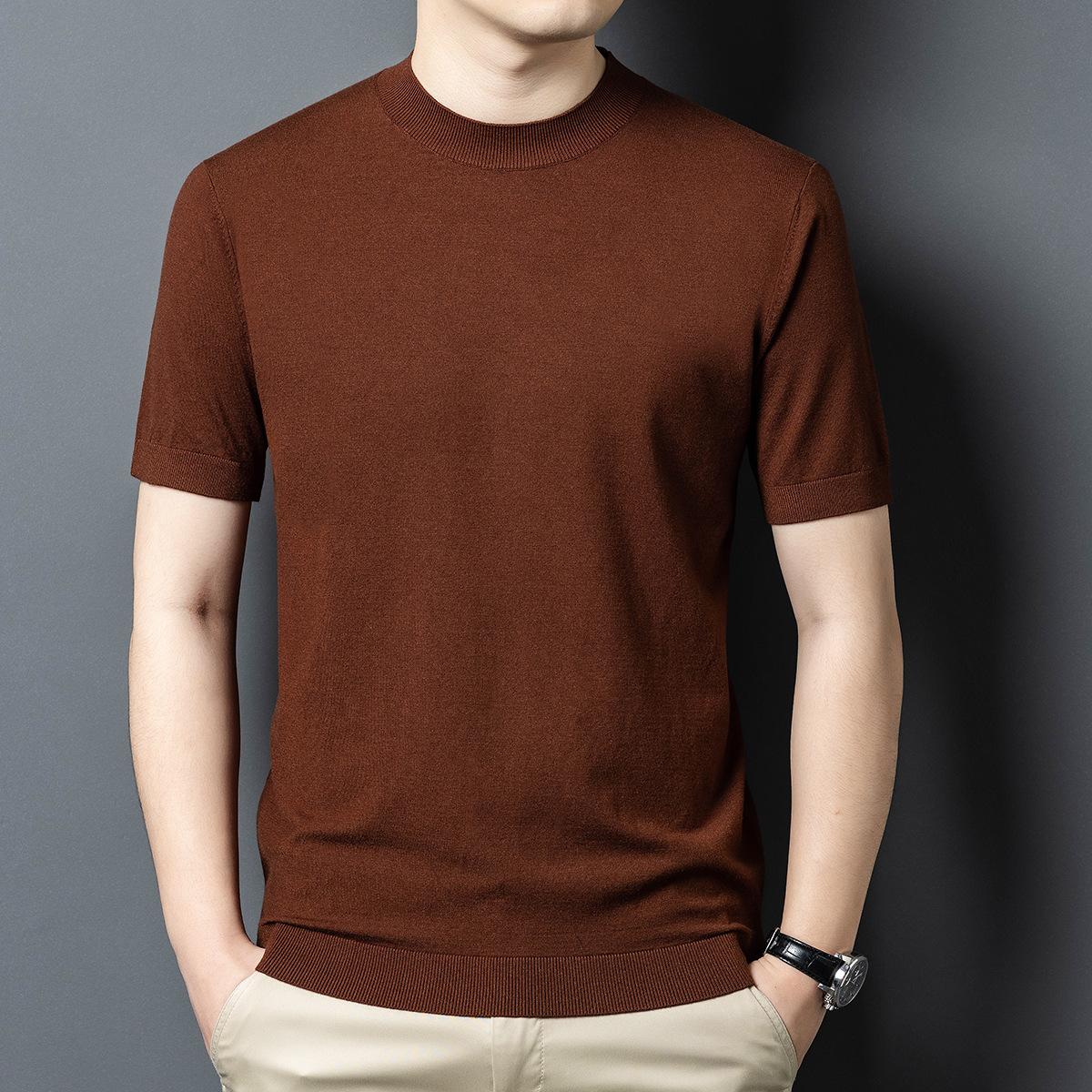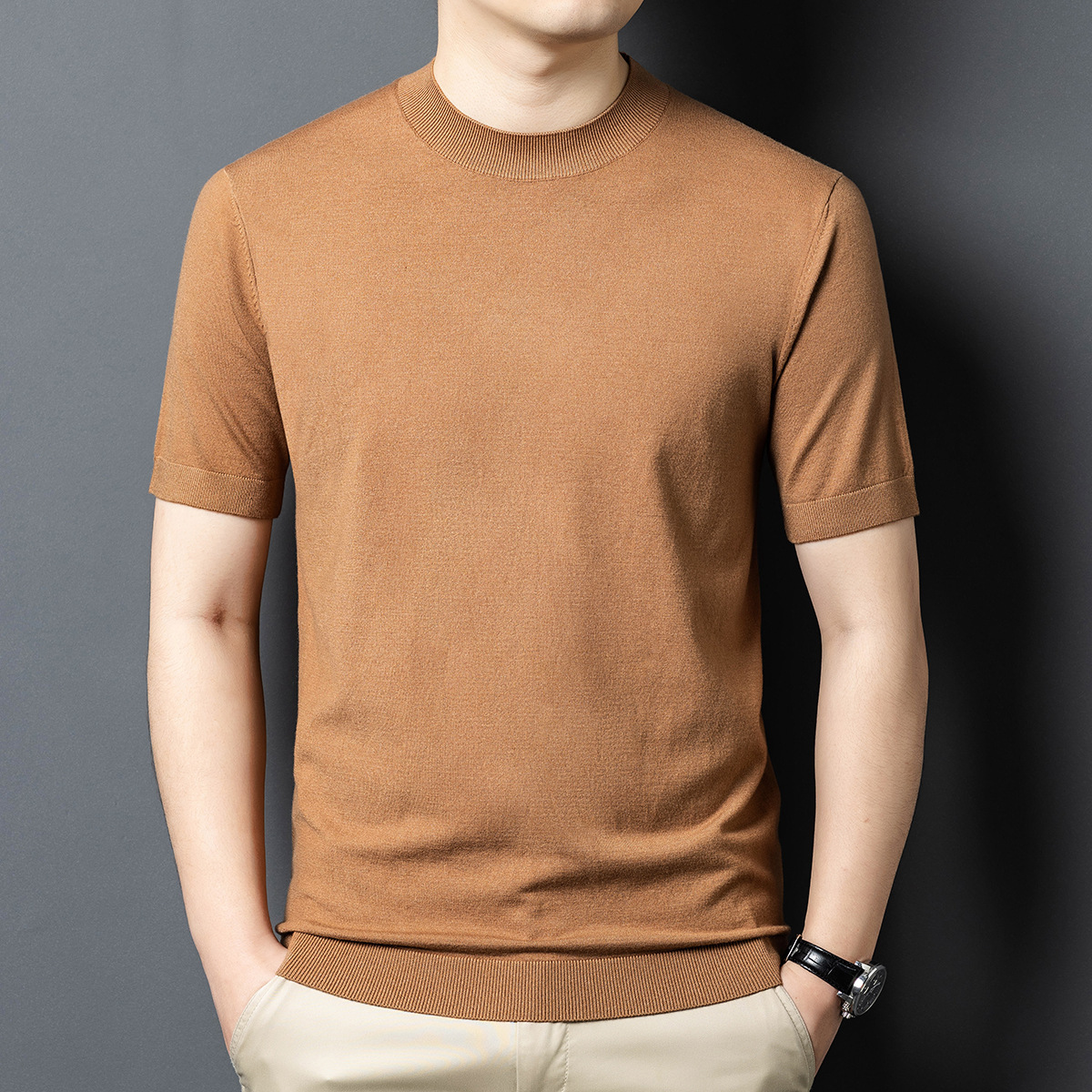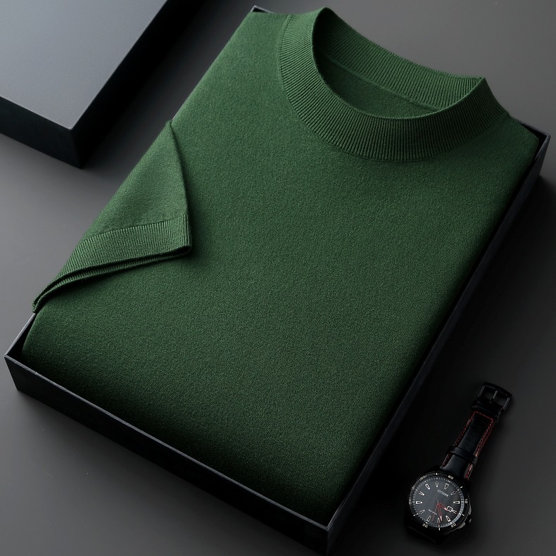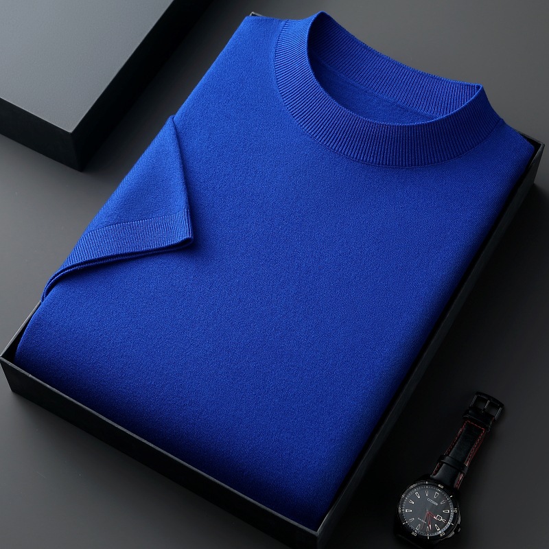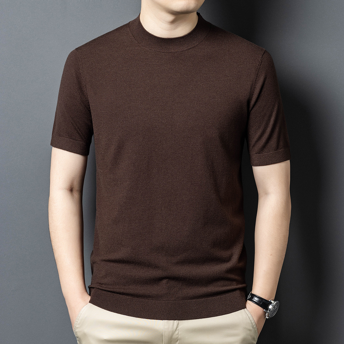 남성용 생방송 반팔 스웨터, 사계절 하프 터틀넥, 솔리드 컬러 트렌디, 다용도 캐주얼 바텀 셔츠, 남성용 티셔츠