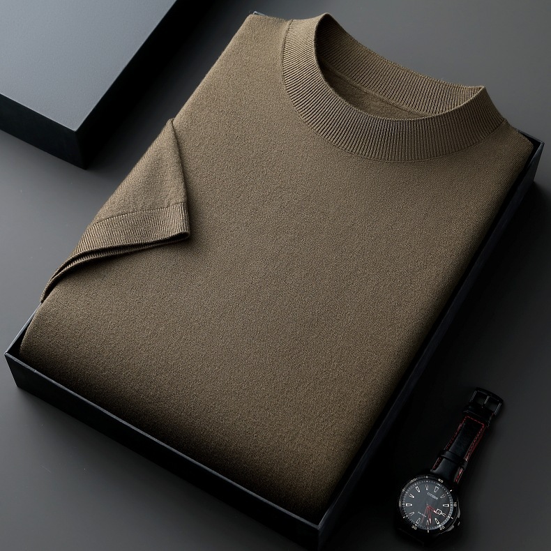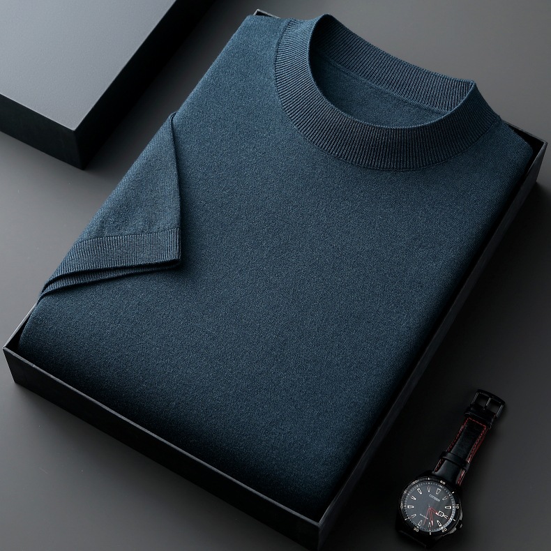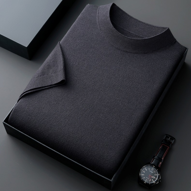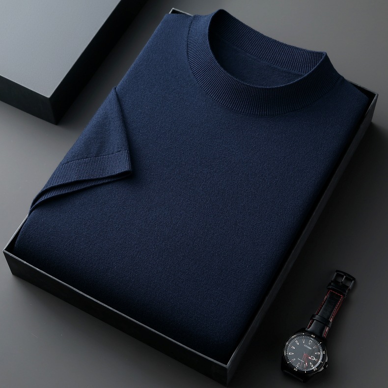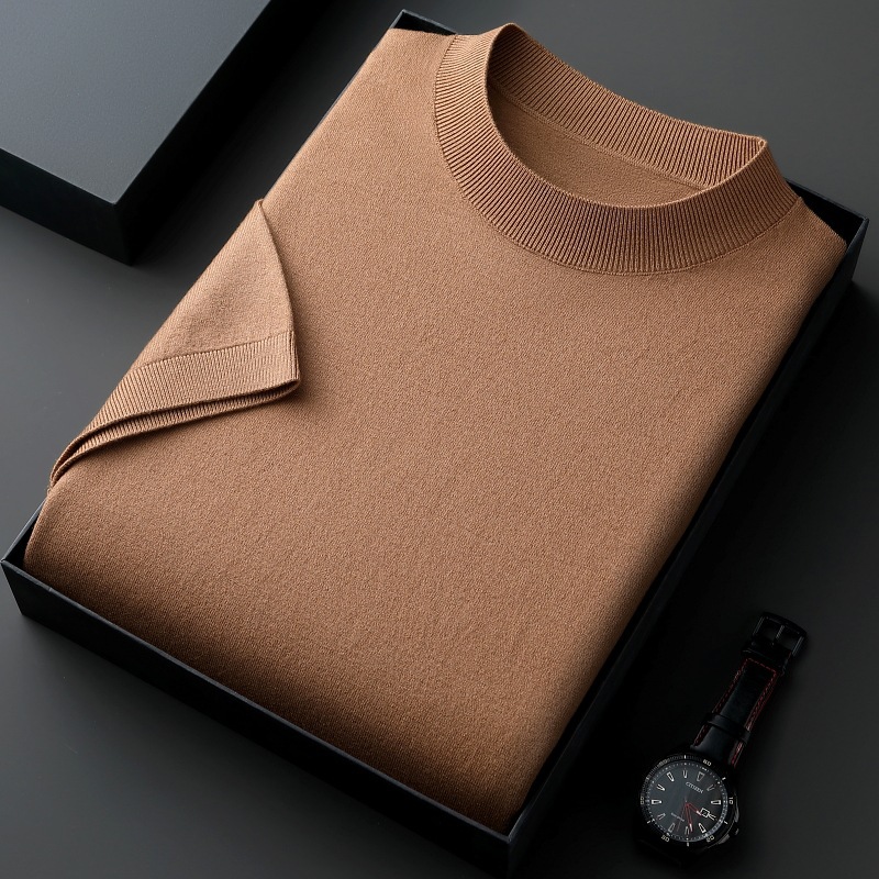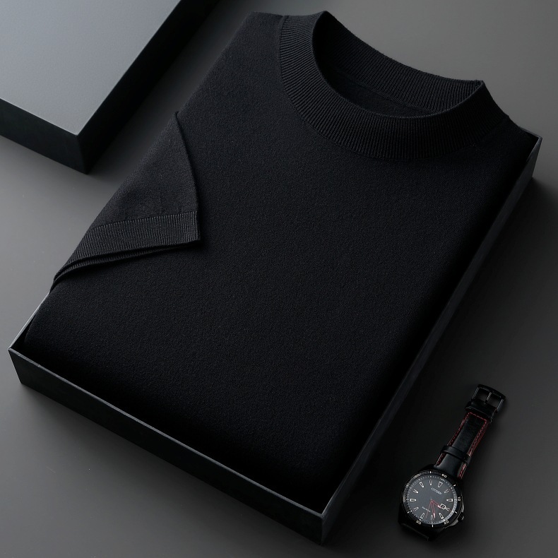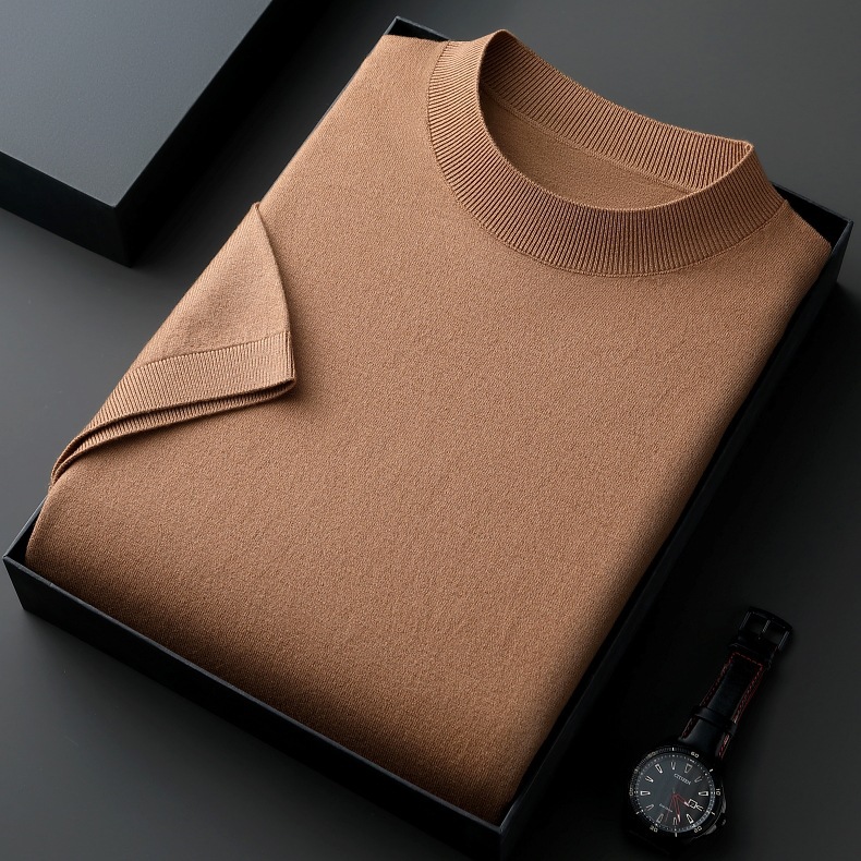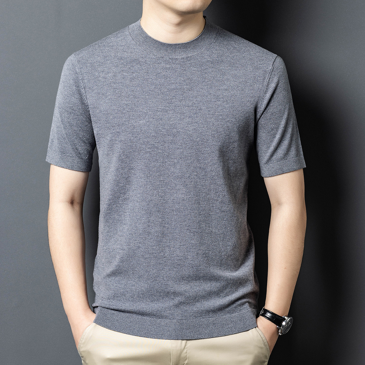 남성용 생방송 반팔 스웨터, 사계절 하프 터틀넥, 솔리드 컬러 트렌디, 다용도 캐주얼 바텀 셔츠, 남성용 티셔츠