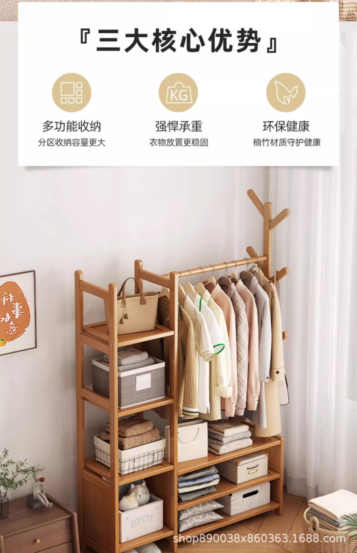 단단한 나무 굵은 옷걸이 실내 바닥 걸이 새로운 중국 스타일 코트 랙 스토리지 랙 서랍 침실 보관 캐비닛