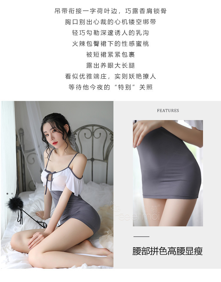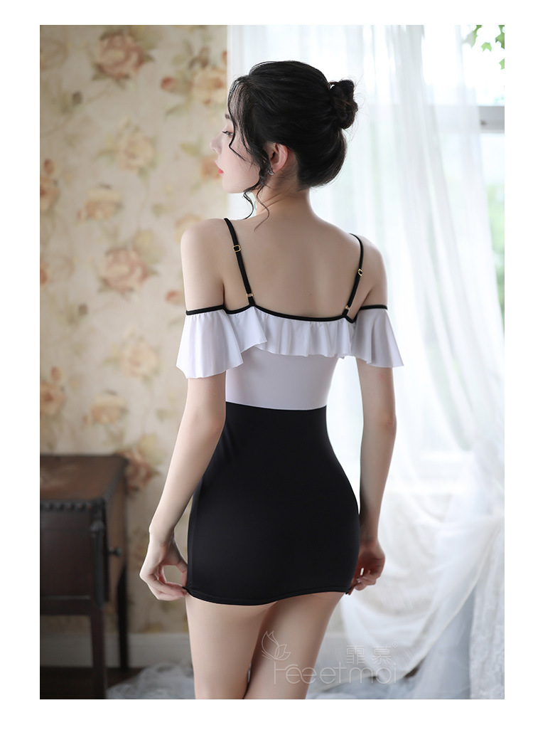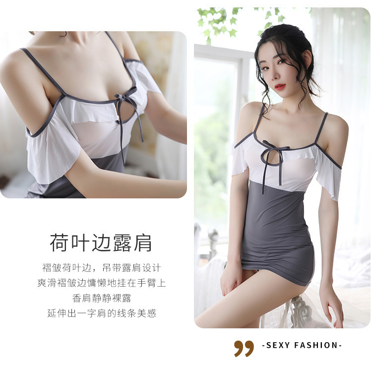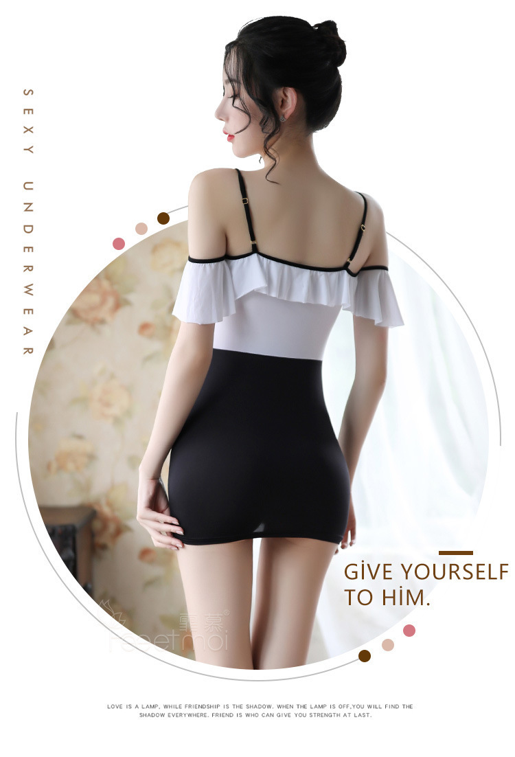 섹시한 속옷, 러플, 오프숄더, 힙허깅 스커트, 열정적인 슈트, 비서 나이트클럽 유니폼, 유혹, 드롭쉬핑