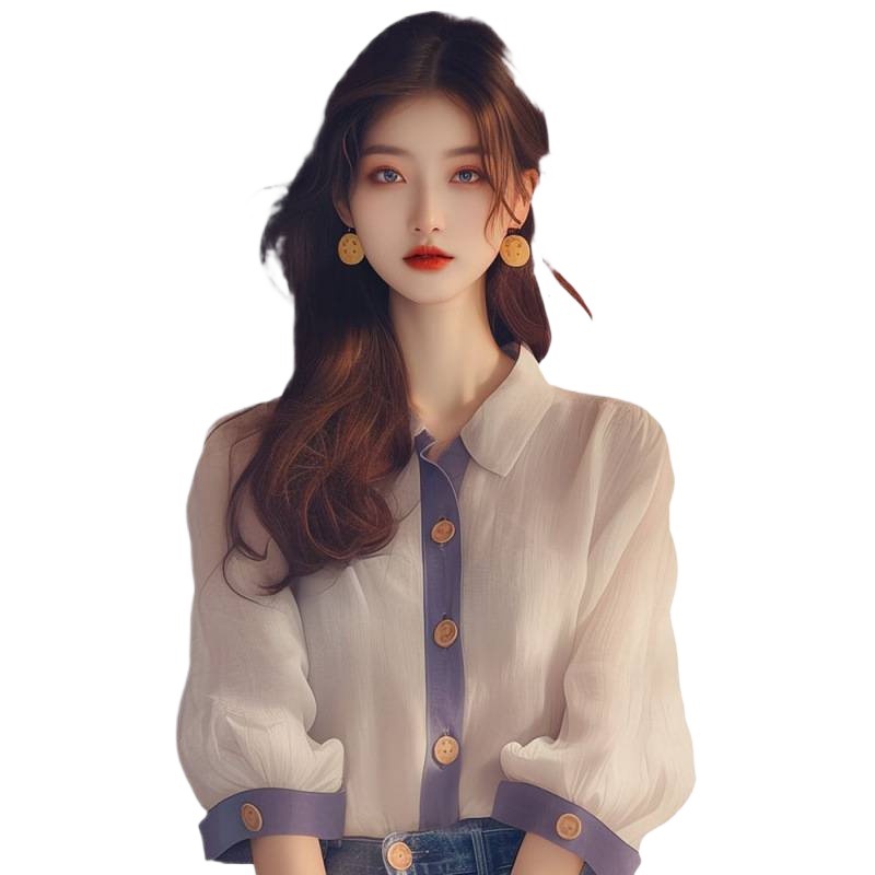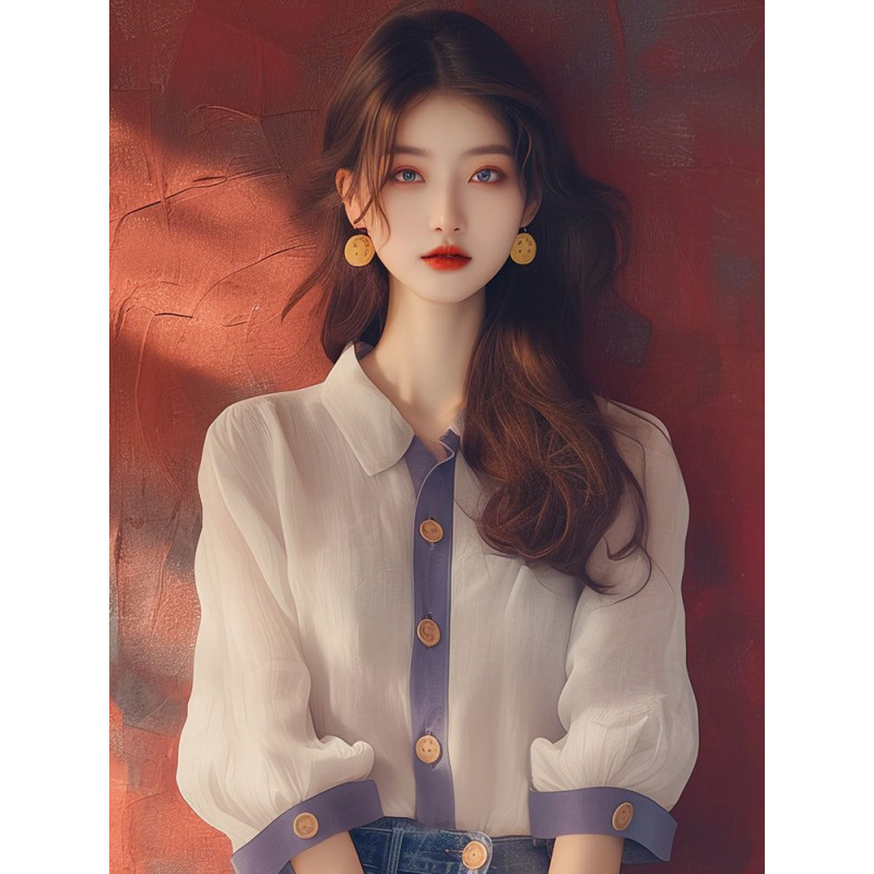 프랑스 스타일 폴로 칼라 쉬폰 셔츠 여성 하이 엔드 디자인 센스 틈새 독특한 봄과 가을 세련된 느슨한 반소매 탑