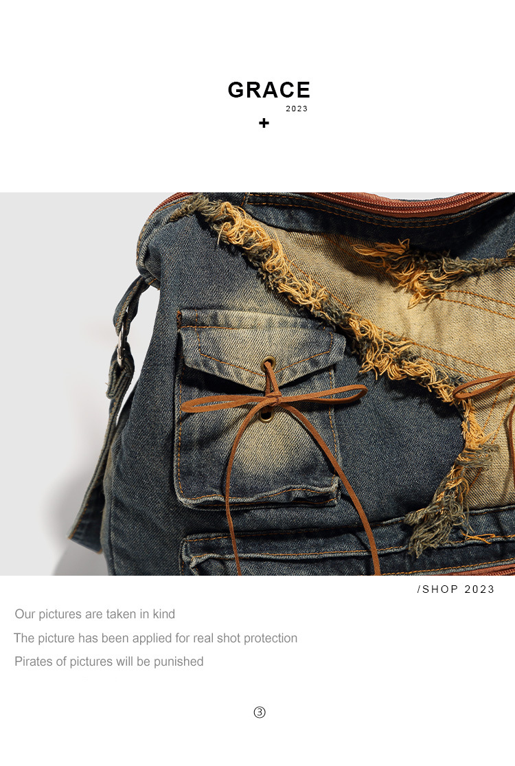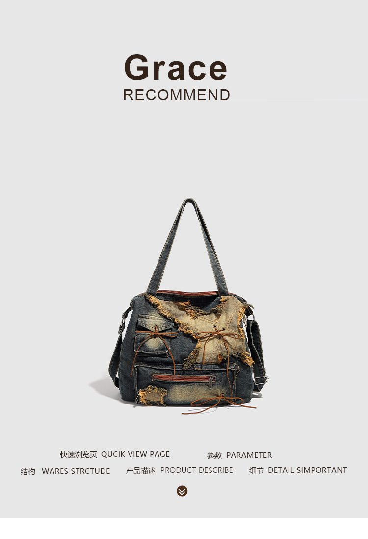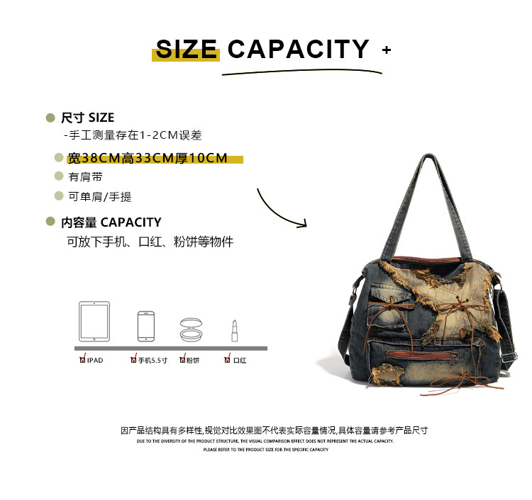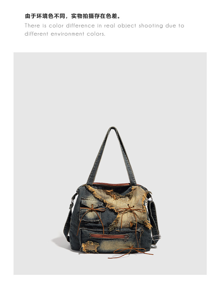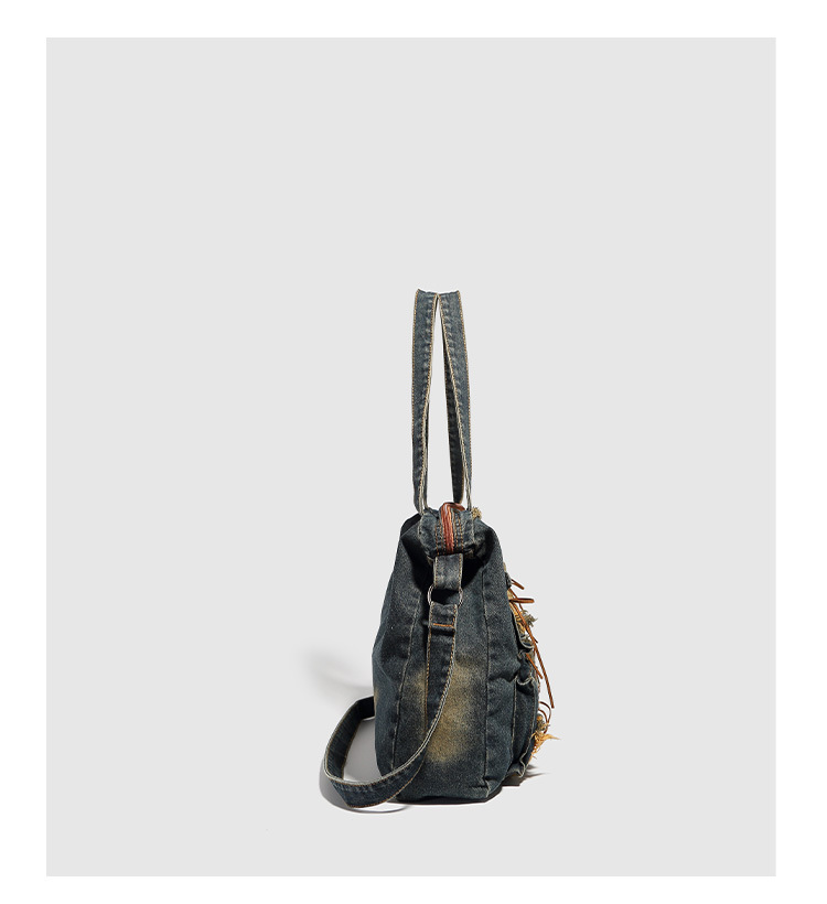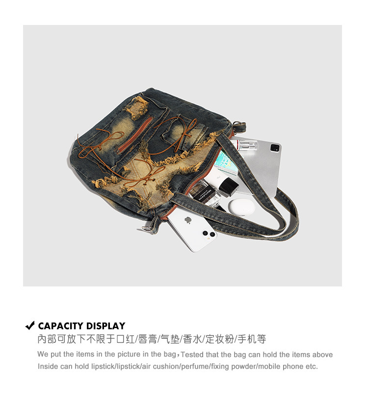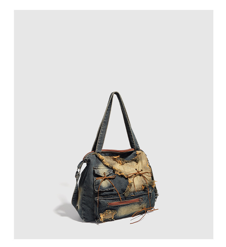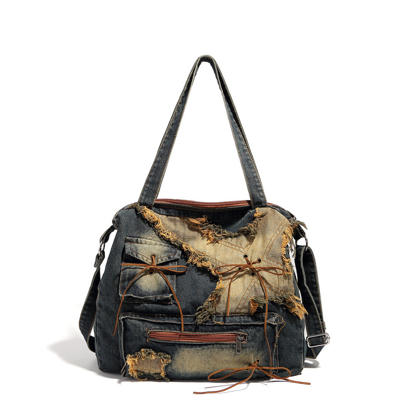 2025 새로운 대용량 토트 백 핫 소녀 가방 여성의 오래된 복고풍 어깨 가방 워시 데님 가방 캐주얼 여성 가방